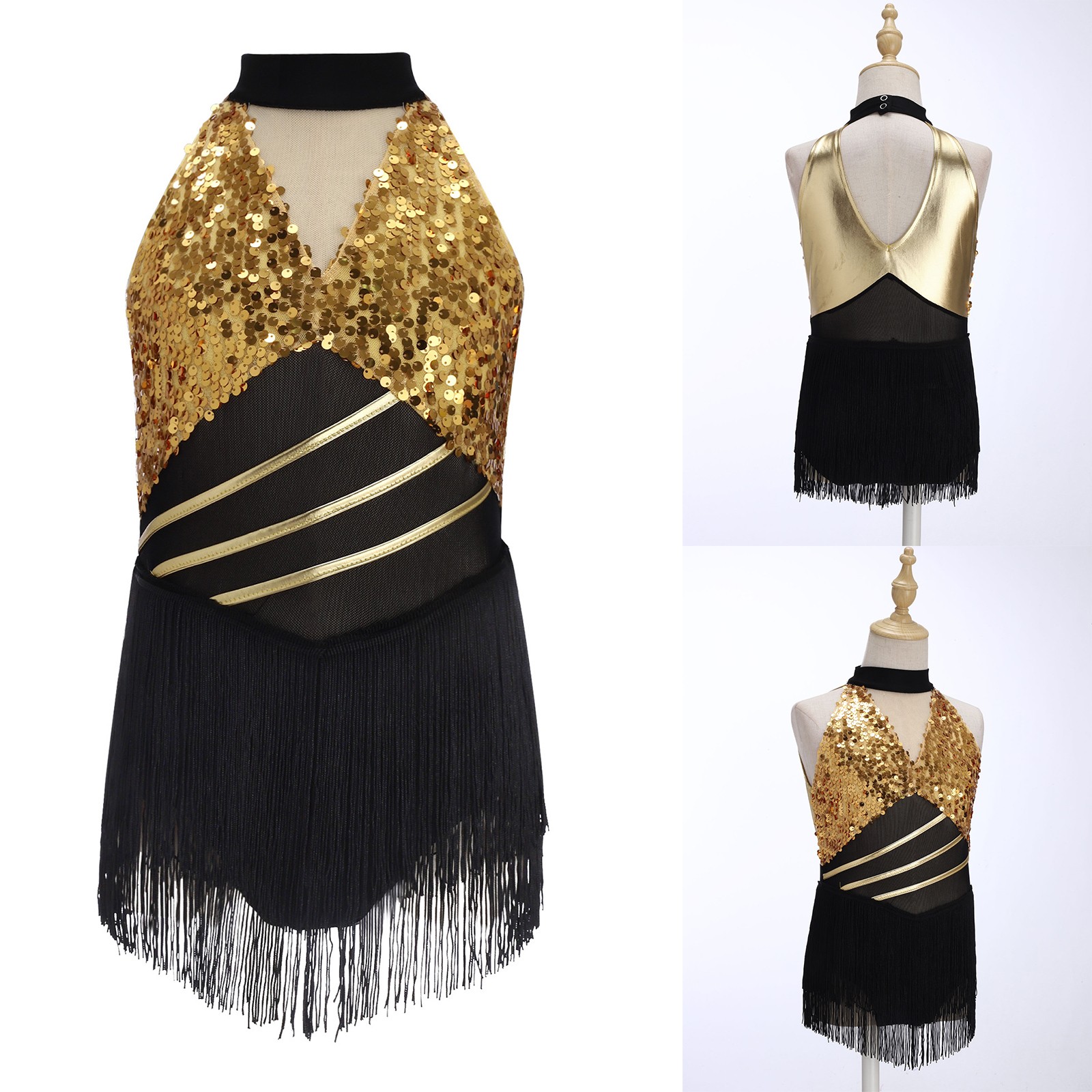 Girls Dress Sequined Costume Sequin Leotard Dress Up Dancewear Shiny Ruched