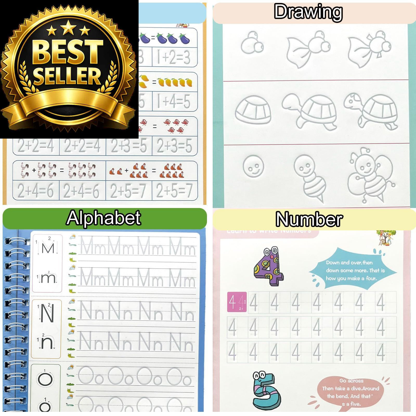 Magic Grooved Writing Practice Book for Kids Ages 3-5, Tiny Thinkers...