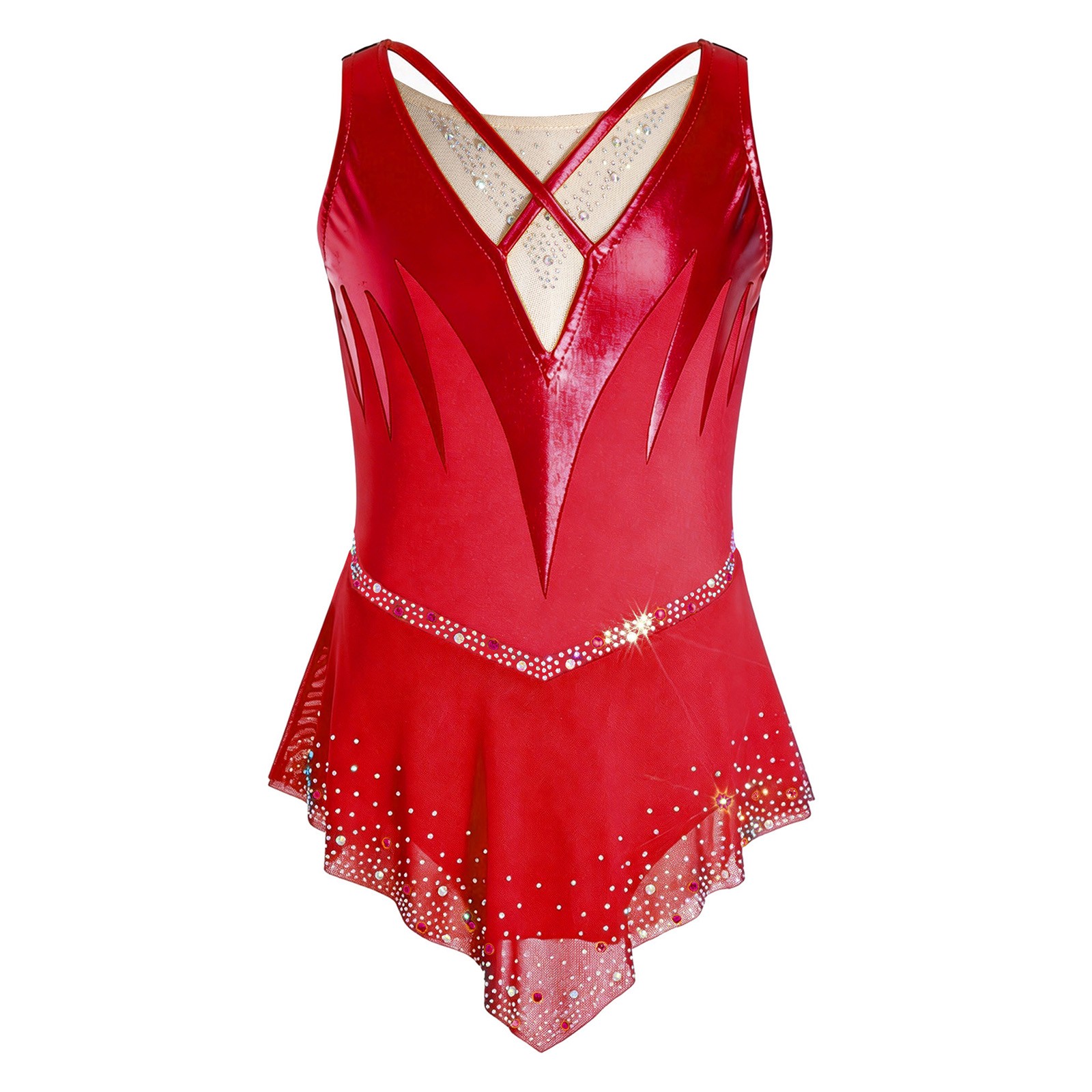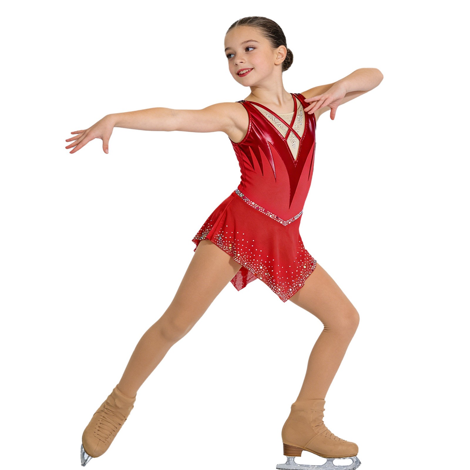 Kids Girls Dress Lyrical Dancewear Rhinestone Costume Sparkling Figure Skating