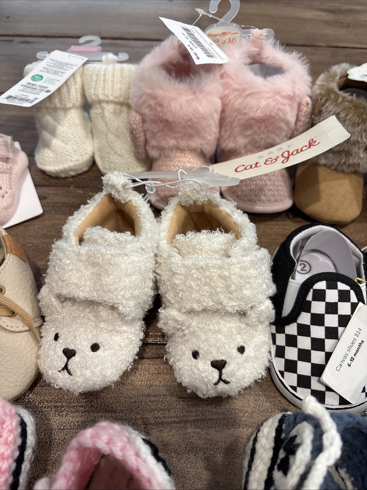 Lot 12 Pairs Infant Girl Baby Sizes NB-2 Dressy Slippers, Sock Shoes Boots