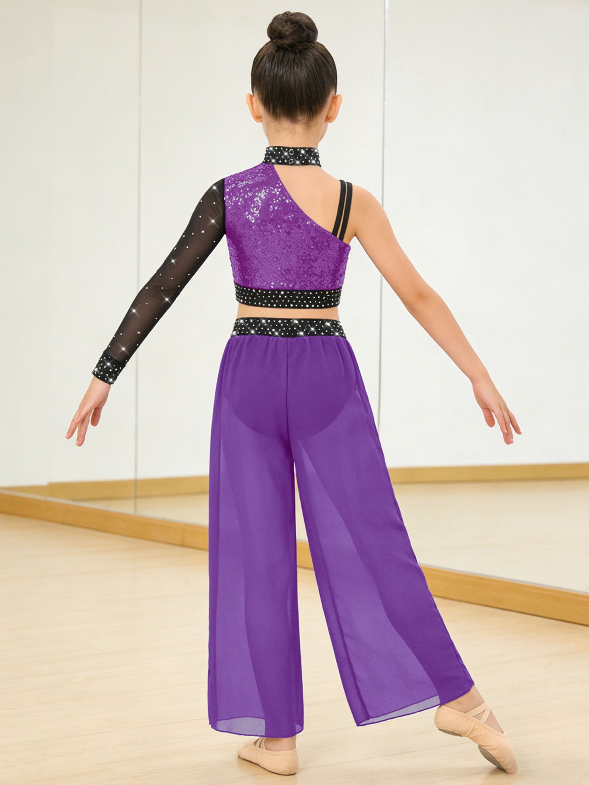Kids Girls Outfit Dress Up Dancewear Chiffon Costume Long Sleeve Dance Stage