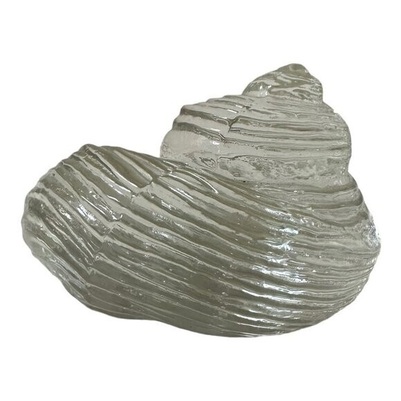 • Clear Glass Seashell Paperweight Collectible Coastal Decor Art Figurine 4" Good