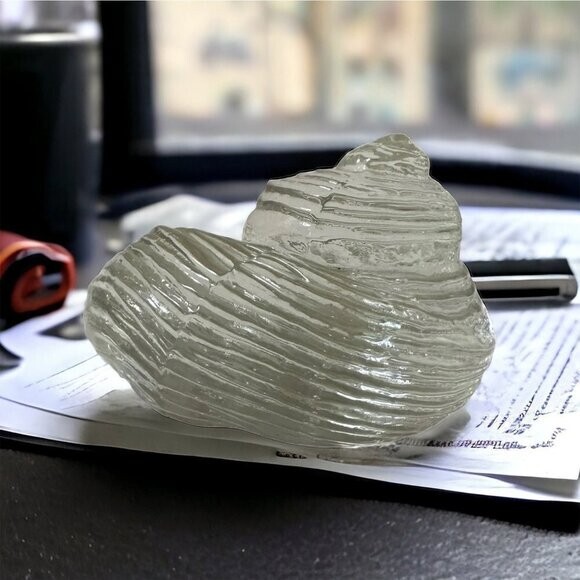 Clear Glass Seashell Paperweight Collectible Coastal Decor Art Figurine 4 Good