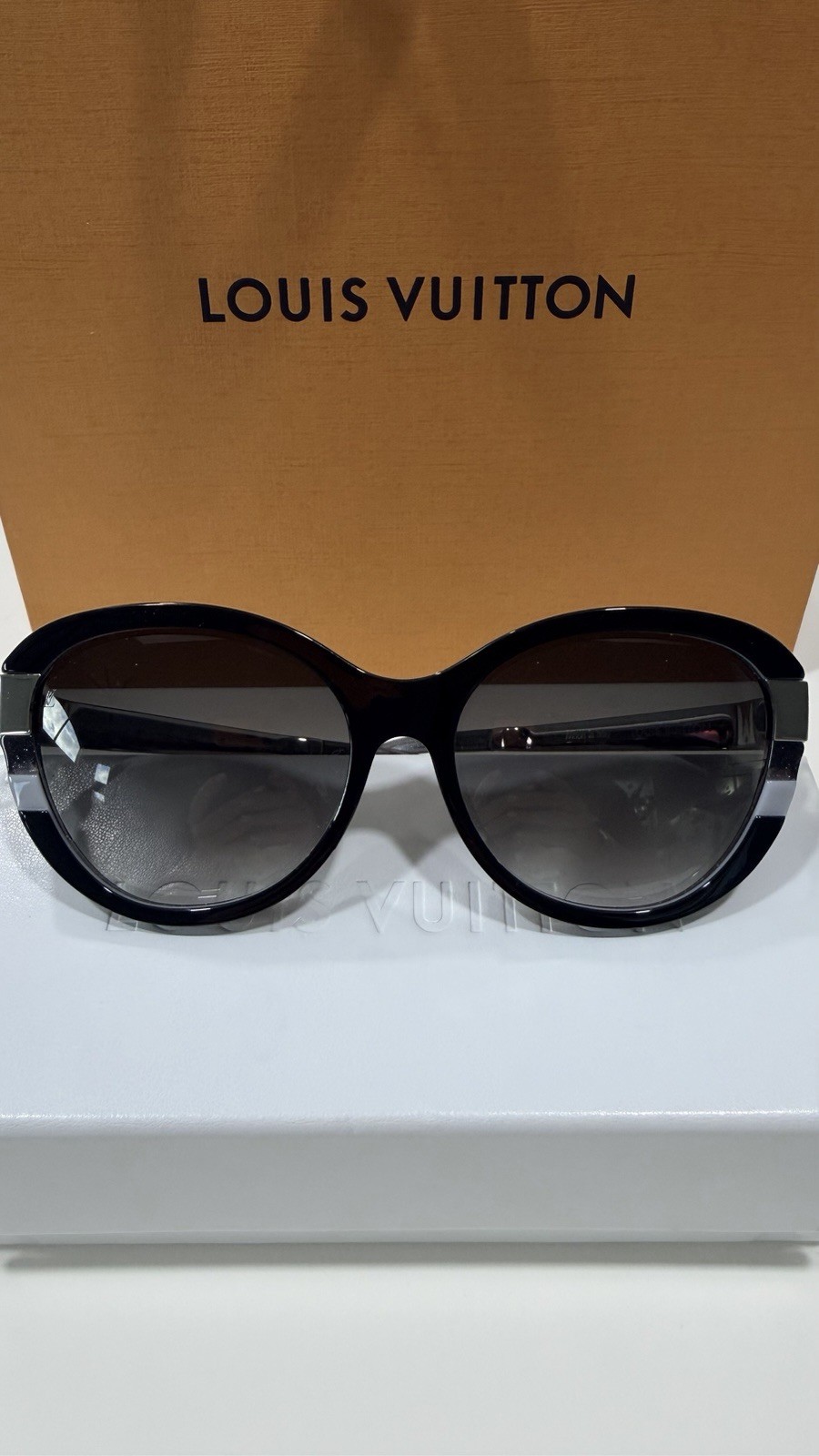 как выглядит Louis Vuitton Sunglasses Petit Spouss Cat Eye Black with Silver Hardware фото