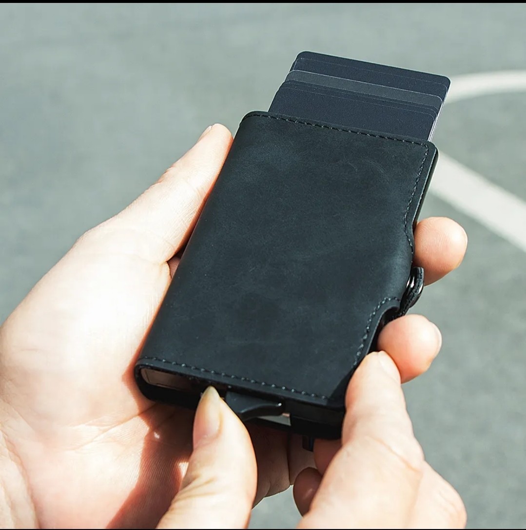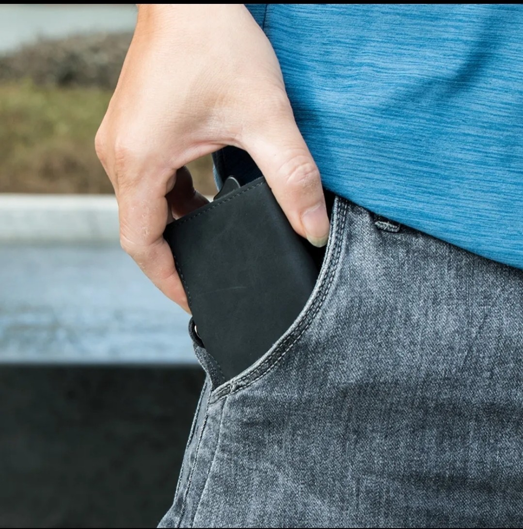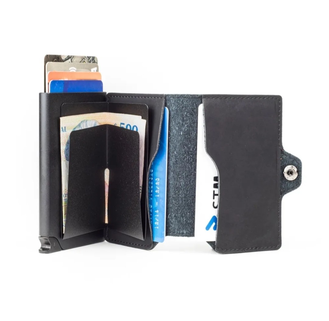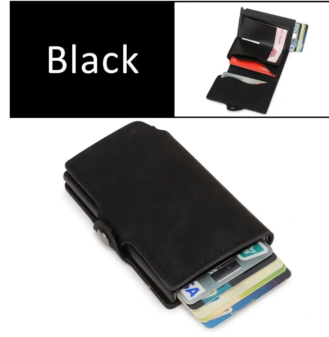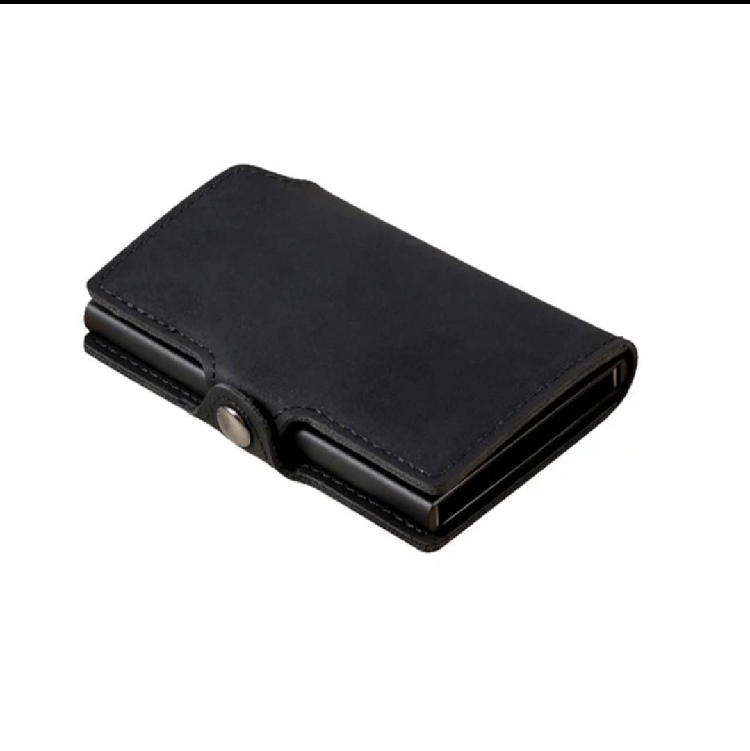 Men's Slim RFID Blocking Black Wallet Pop Up Card Minimalist Stylish Buckle