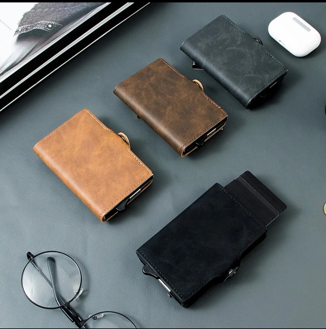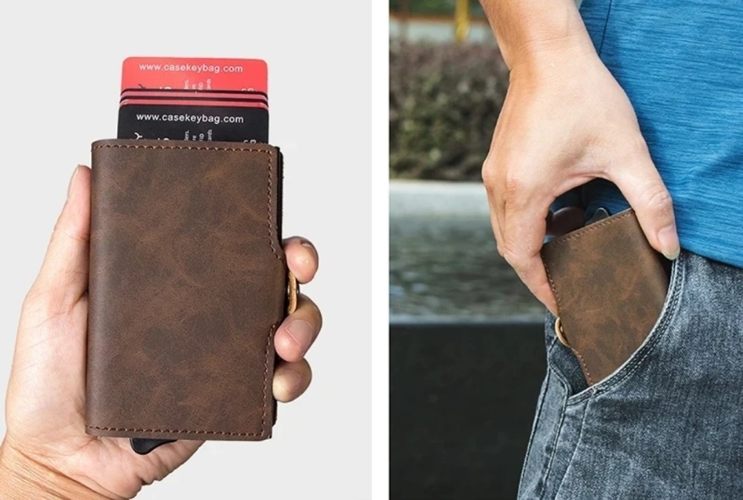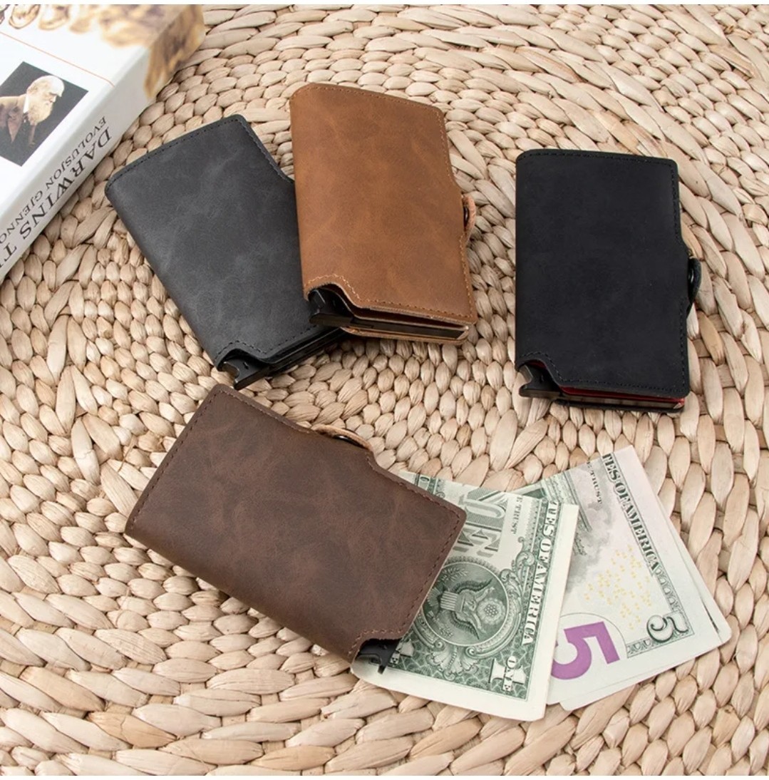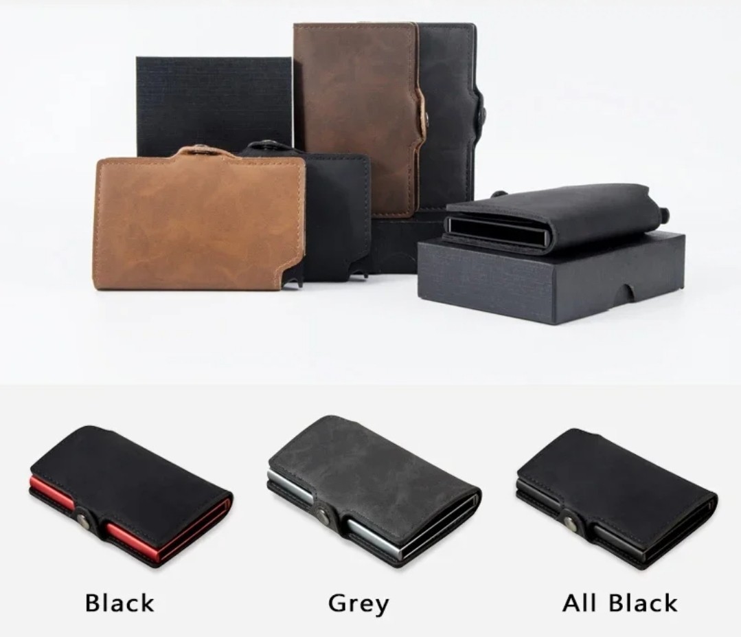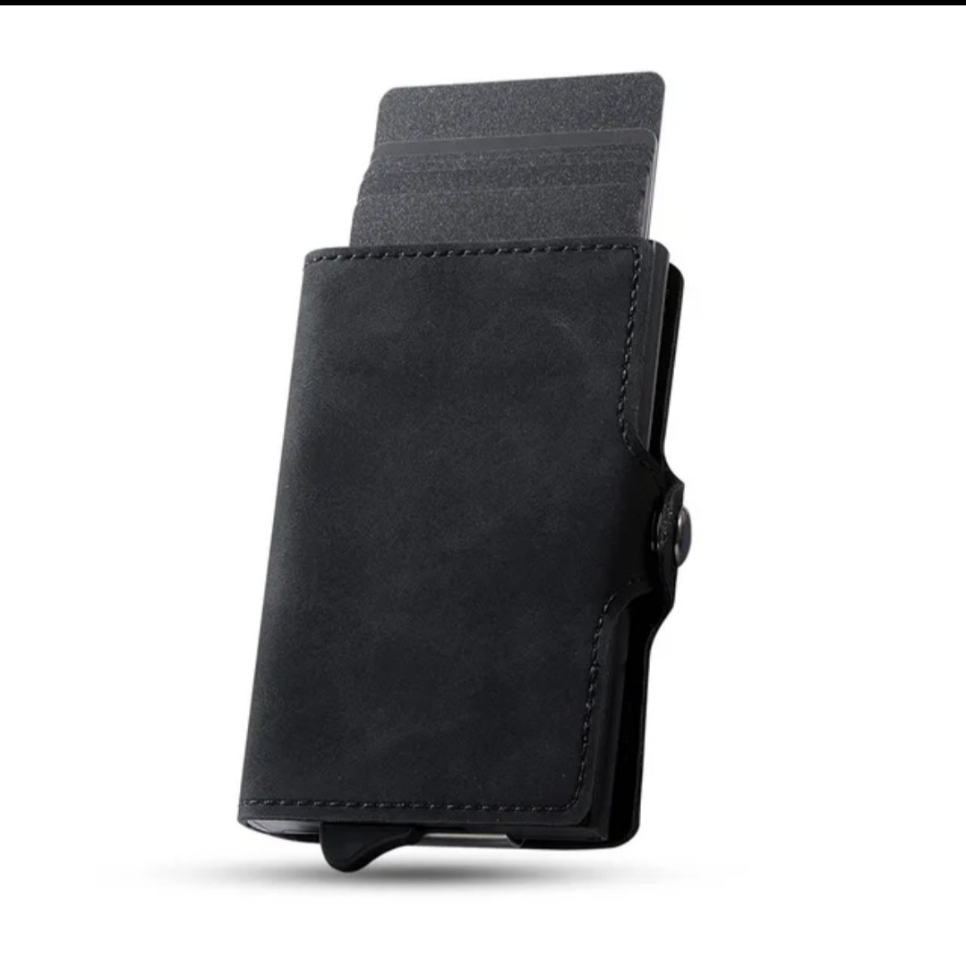 Men's Slim RFID Blocking Black Wallet Pop Up Card Minimalist Stylish Buckle