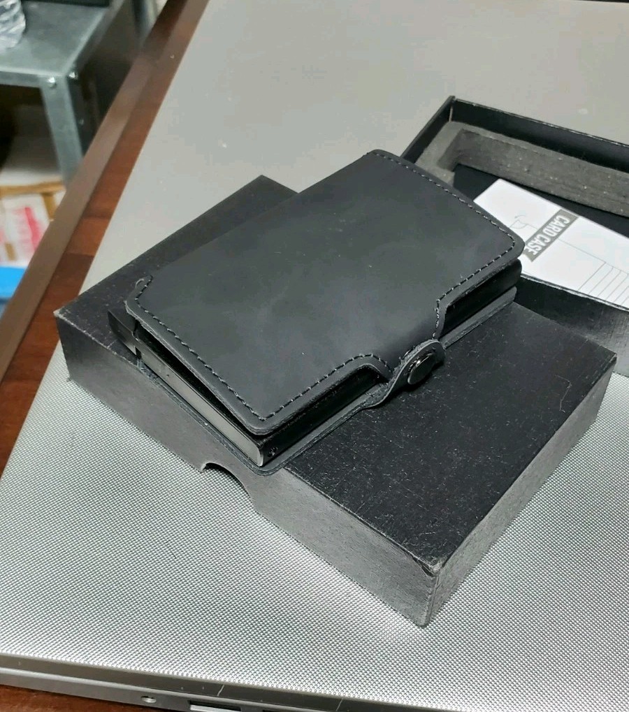 как выглядит Mens Slim RFID Blocking Black Wallet Pop Up Card Minimalist Stylish Buckle фото