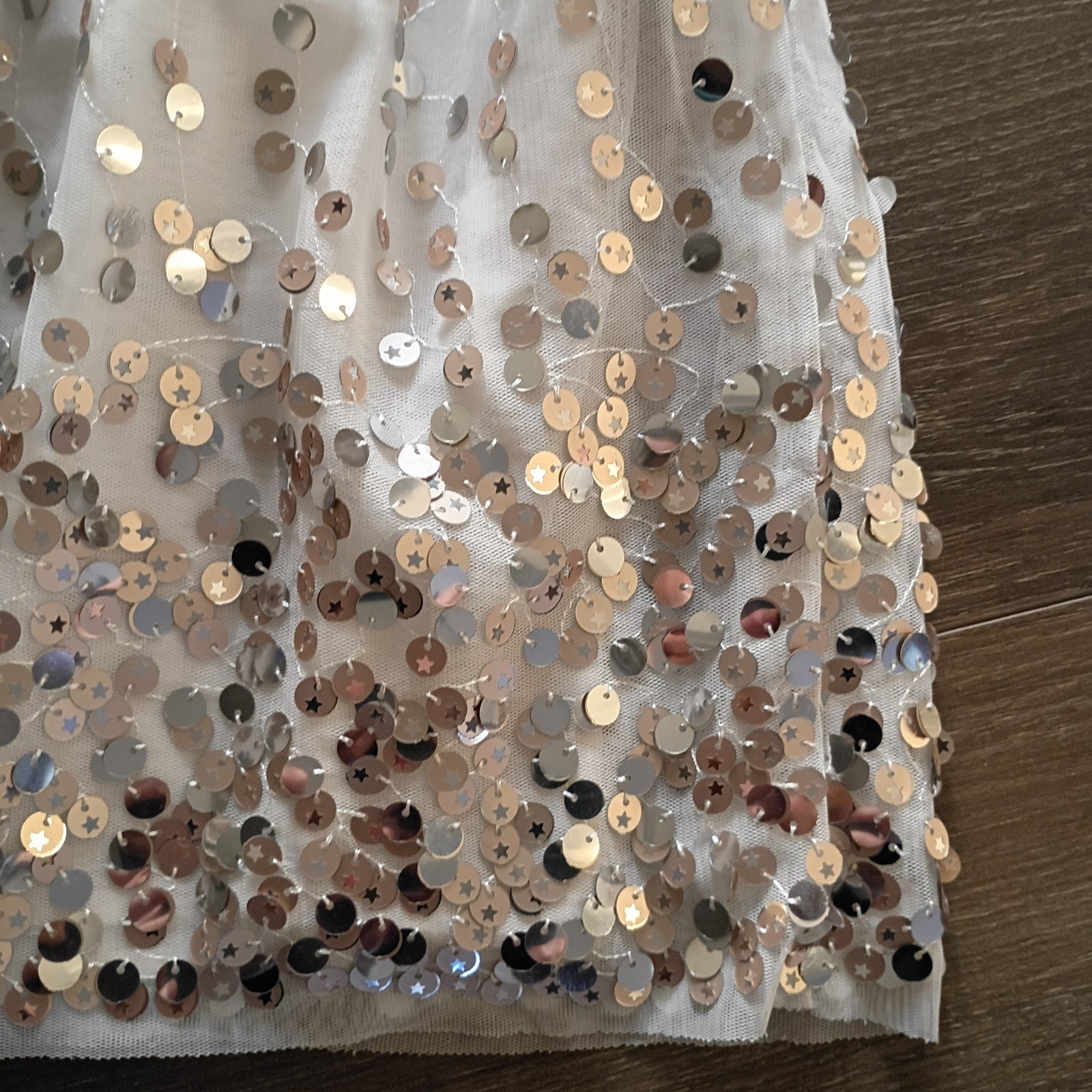 как выглядит Cat Jack Girls White Tulle Sequin Star Skirt Size L 10/12 Silver Sparkle фото