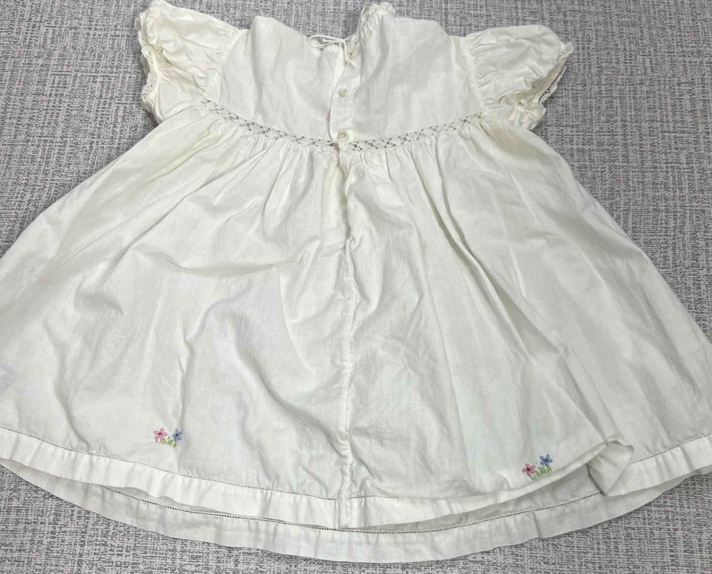 как выглядит Vintage Baby Embroidered Size 6-9 Months Dress White Cotton S/S Handmade фото