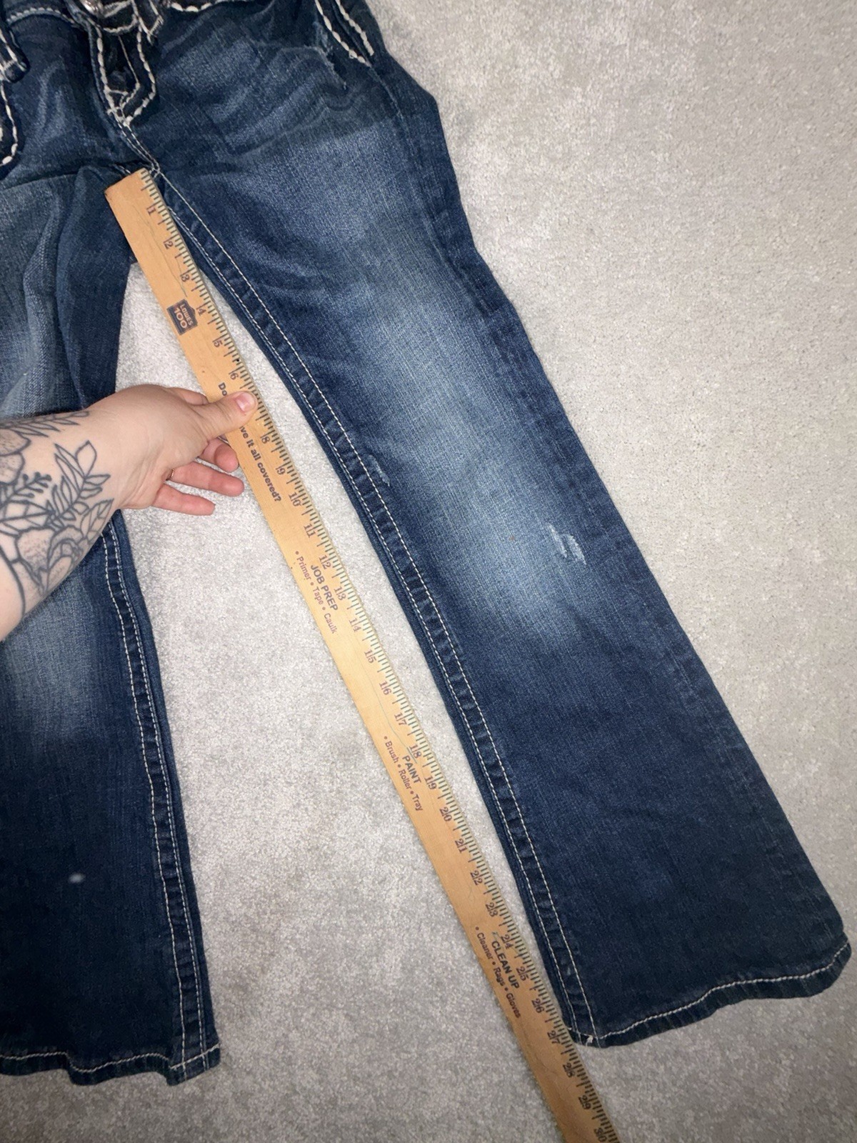 как выглядит Miss Me Girls Blue Bootcut Jeans Size 10 Embroidered Pockets Jpk5014 Denim фото