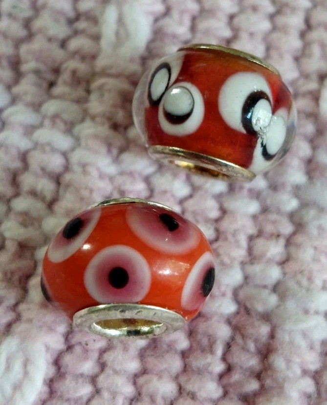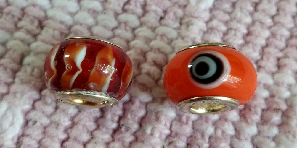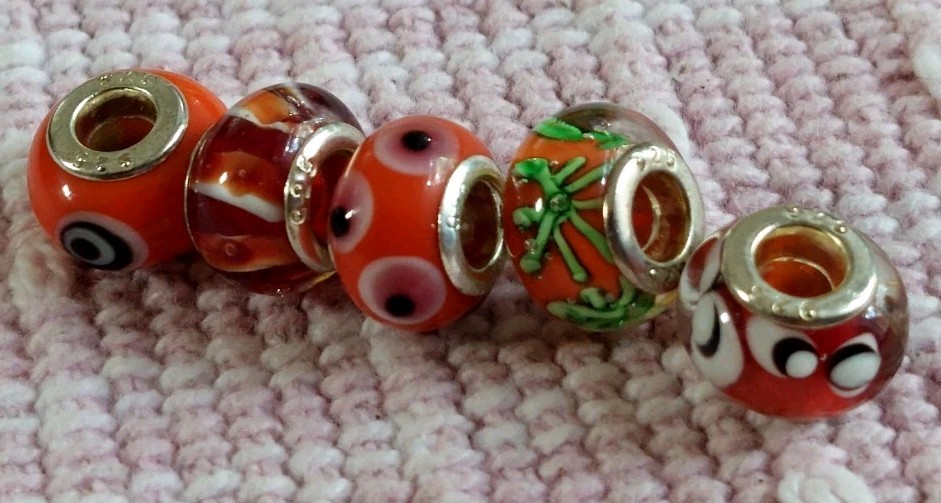 как выглядит Lot of 5 Mixed Yellow Handmade Murano Glass Large Hole Beads Marked 925 фото