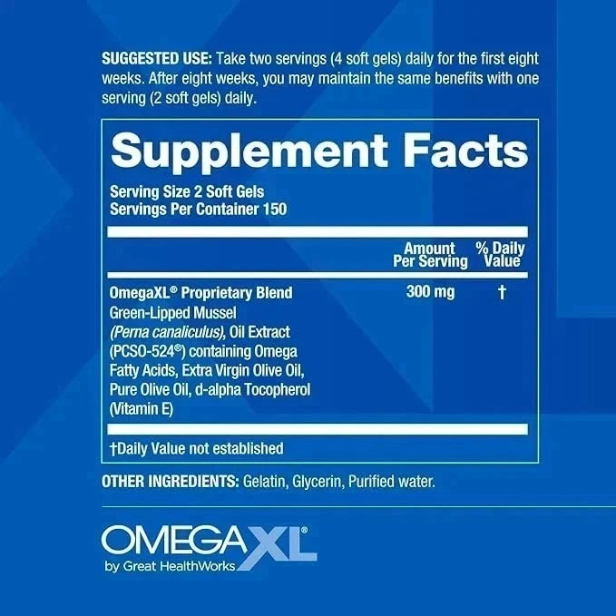 Omega XL Joint Support Supplement For Relife Natural Muscle Support 300 Softgels