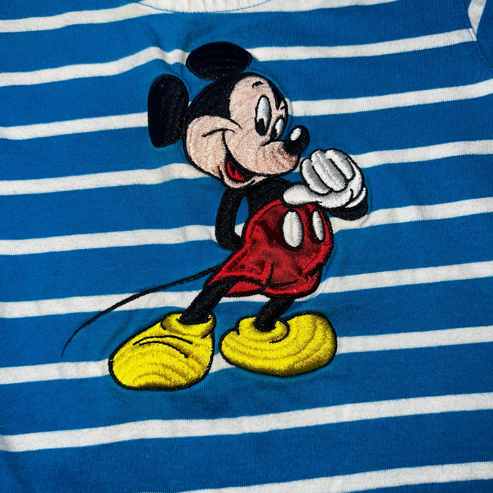 Vintage Disney Store Mickey Mouse embroidered infant blue striped bodysuit 3mo