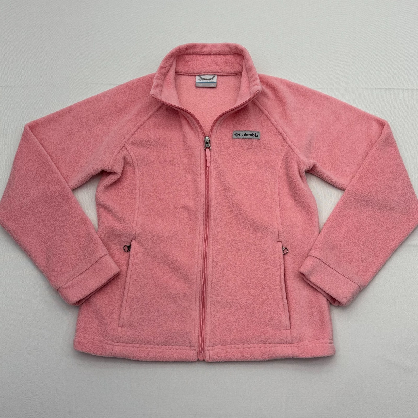 как выглядит Columbia Full Zip Fleece Jacket Girls Medium 10-12 Pink Long Sleeve Pockets фото