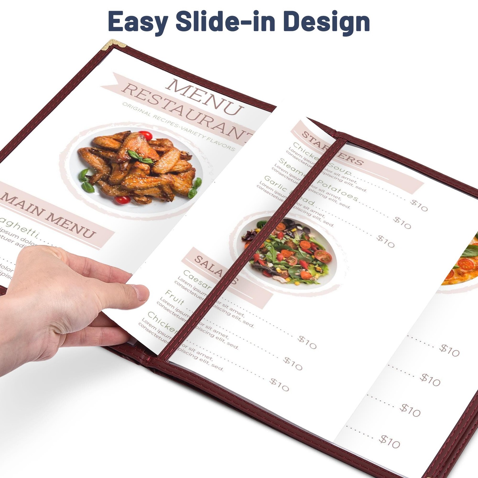 WeChef 30PCS Menu Cover 8.5x11 6 View 3 Page Burgundy Trim Trifold Restaurant