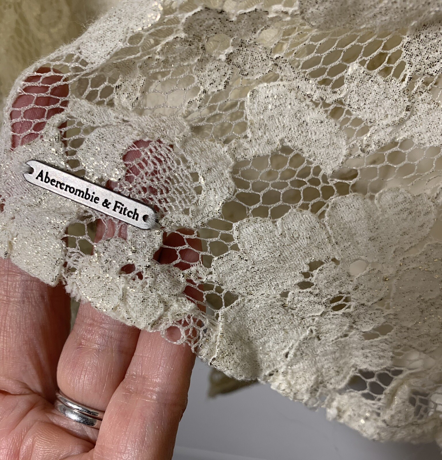 как выглядит Abercrombie Fitch Mini Skirt M White Lace Coquette Skater 26 Waist 16 Long фото