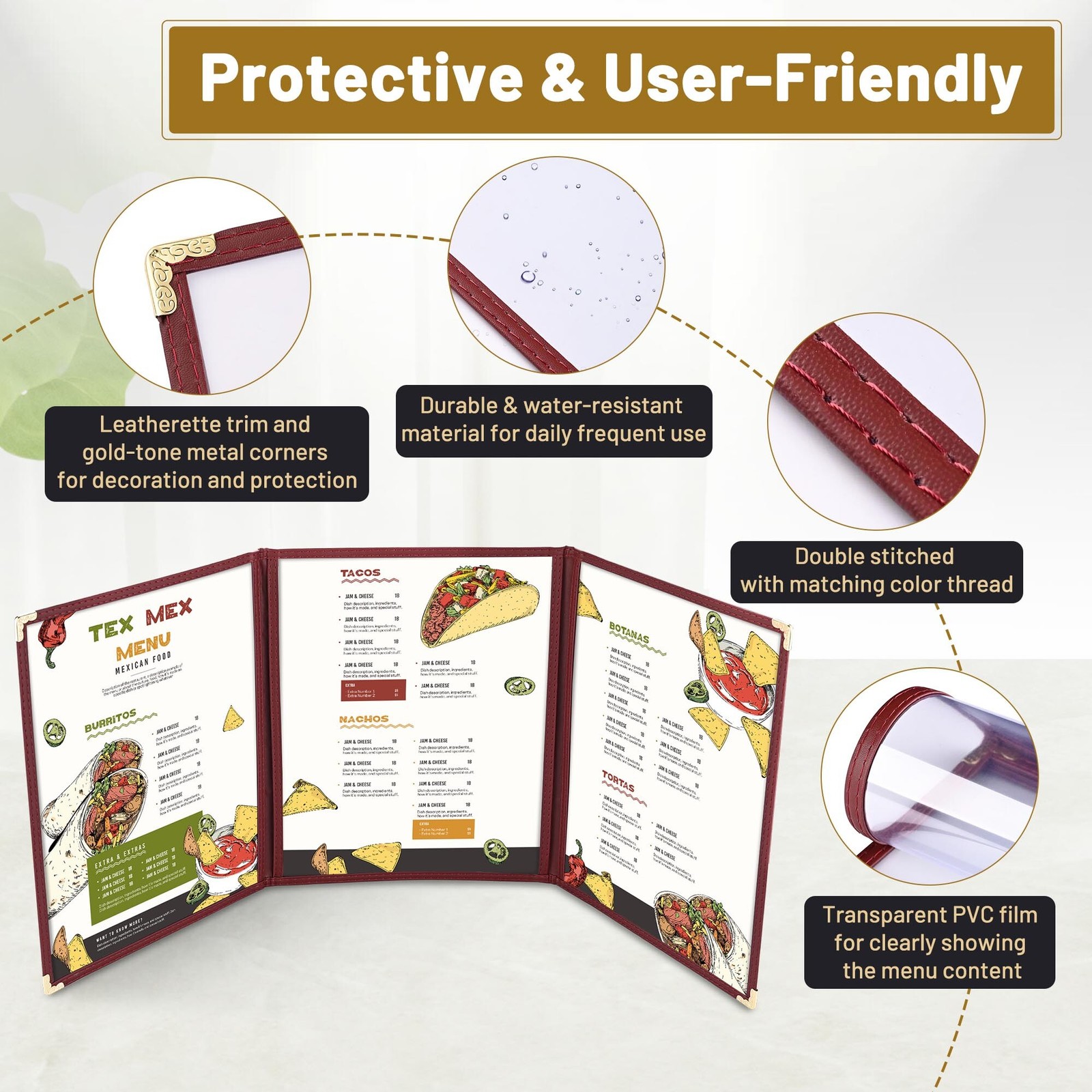 WeChef 30 Packs Menu Covers 8.5x11 Triple Fold 3 Pages 6 Views Restaurant