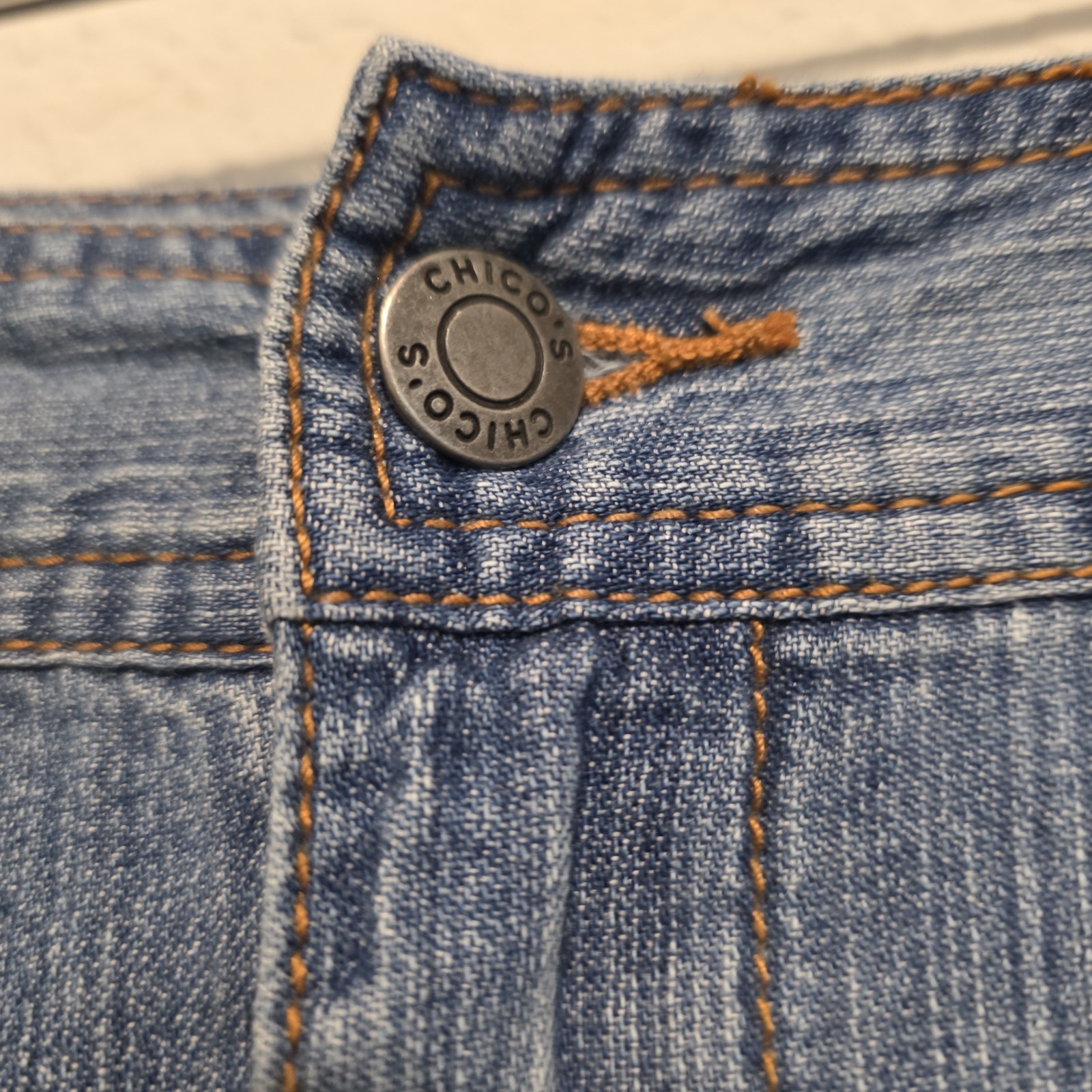 как выглядит VTG Chico s Denim Maxi Length Skirt Modest Patch Pockets Boho Size 1.5 M/10 фото