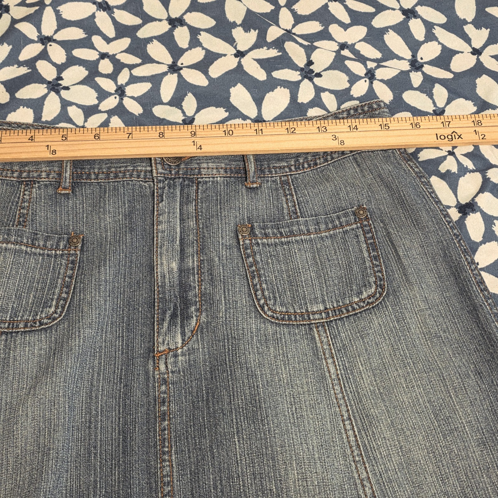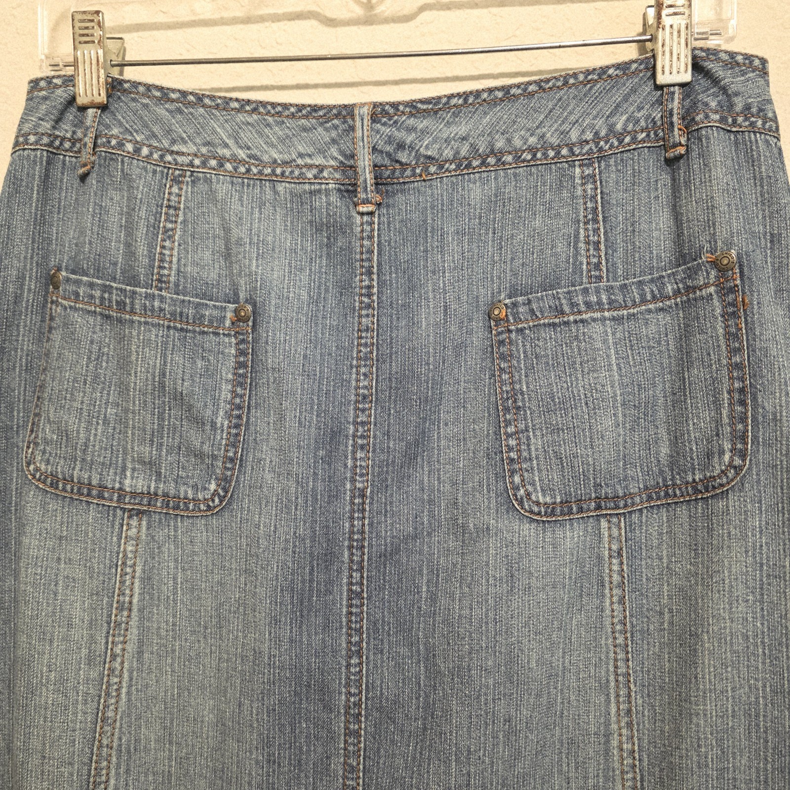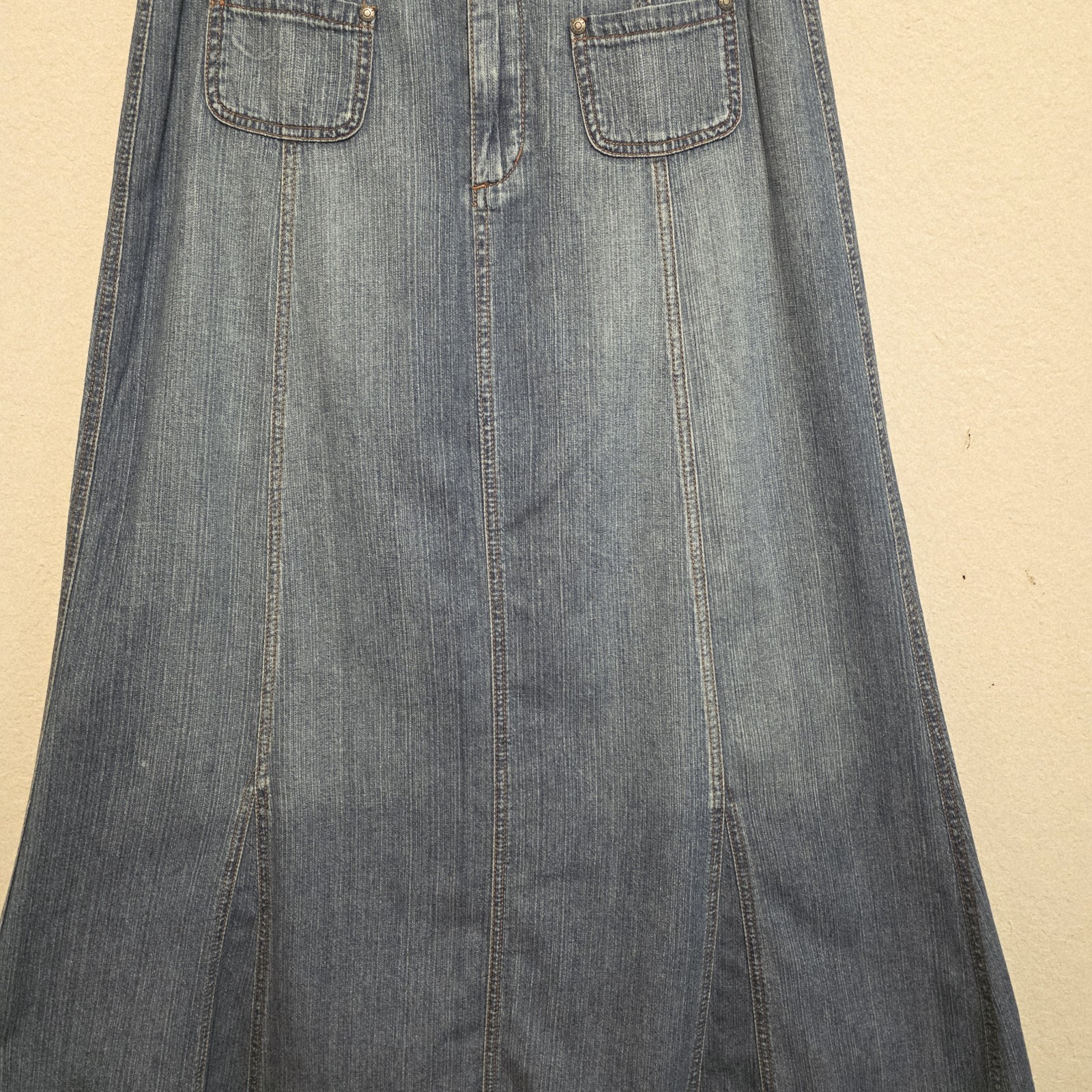 VTG Chico s Denim Maxi Length Skirt Modest Patch Pockets Boho Size 1.5 M/10