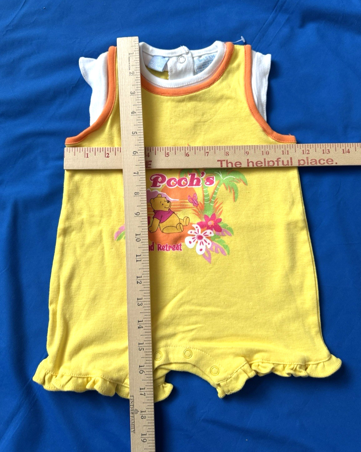 NWOT Vintage Disney Winnie the Pooh Romper Baby 12M Yellow Island Retreat 90s