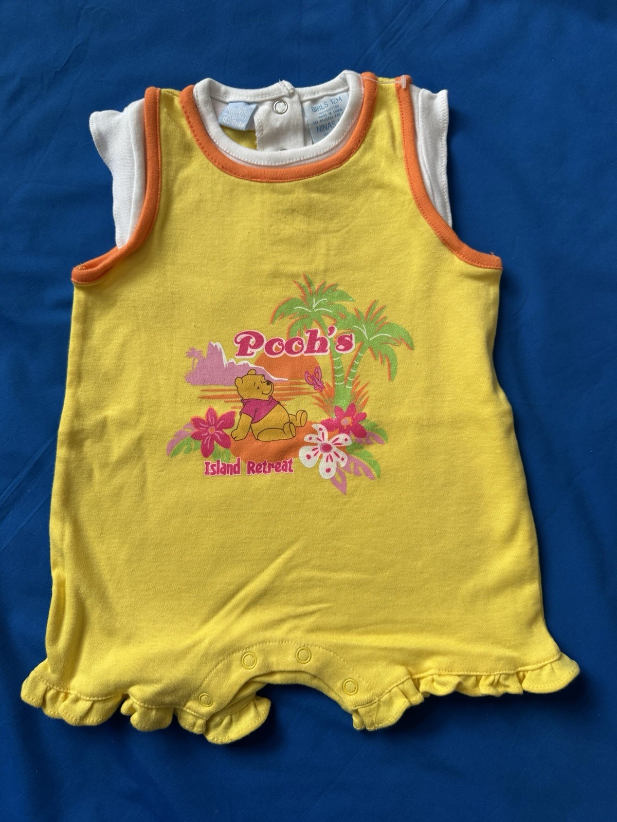 как выглядит NWOT Vintage Disney Winnie the Pooh Romper Baby 12M Yellow Island Retreat 90s фото