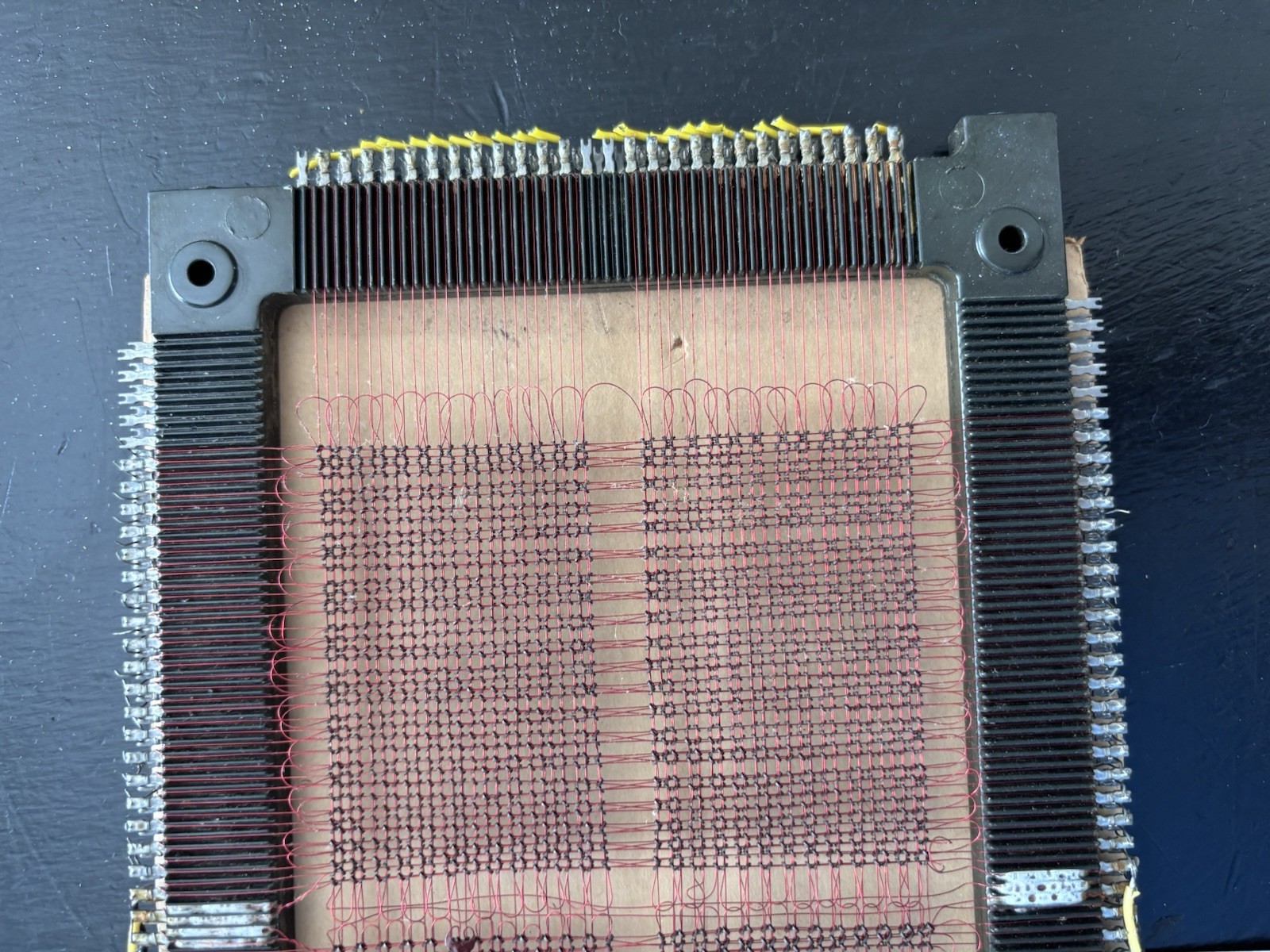 как выглядит 2 Vintage 1970s computer hand woven magnetic core 4000 bit memory planes фото