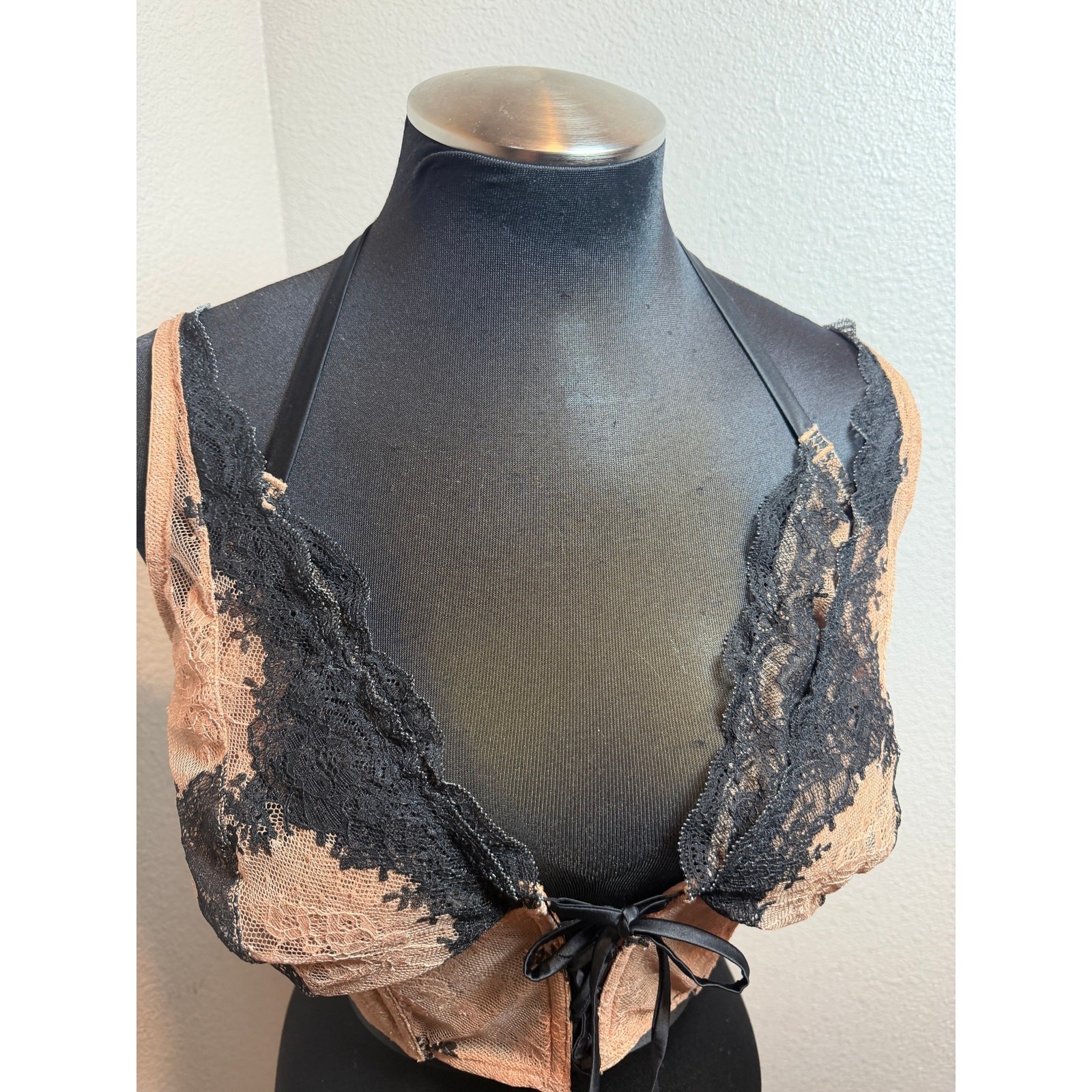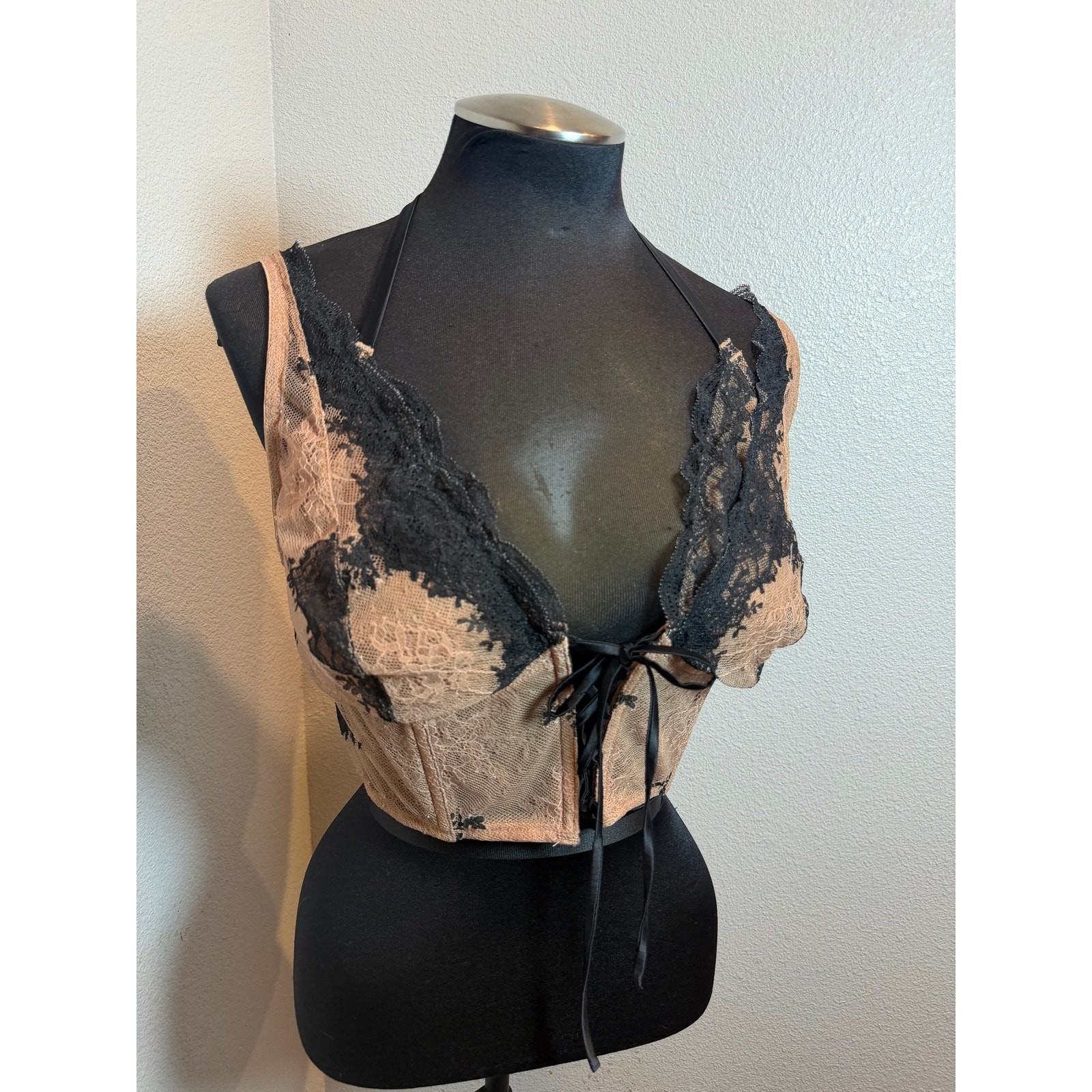 Savage X Fenty Nude Black Lace Corset Bralette Bustier Top Size M