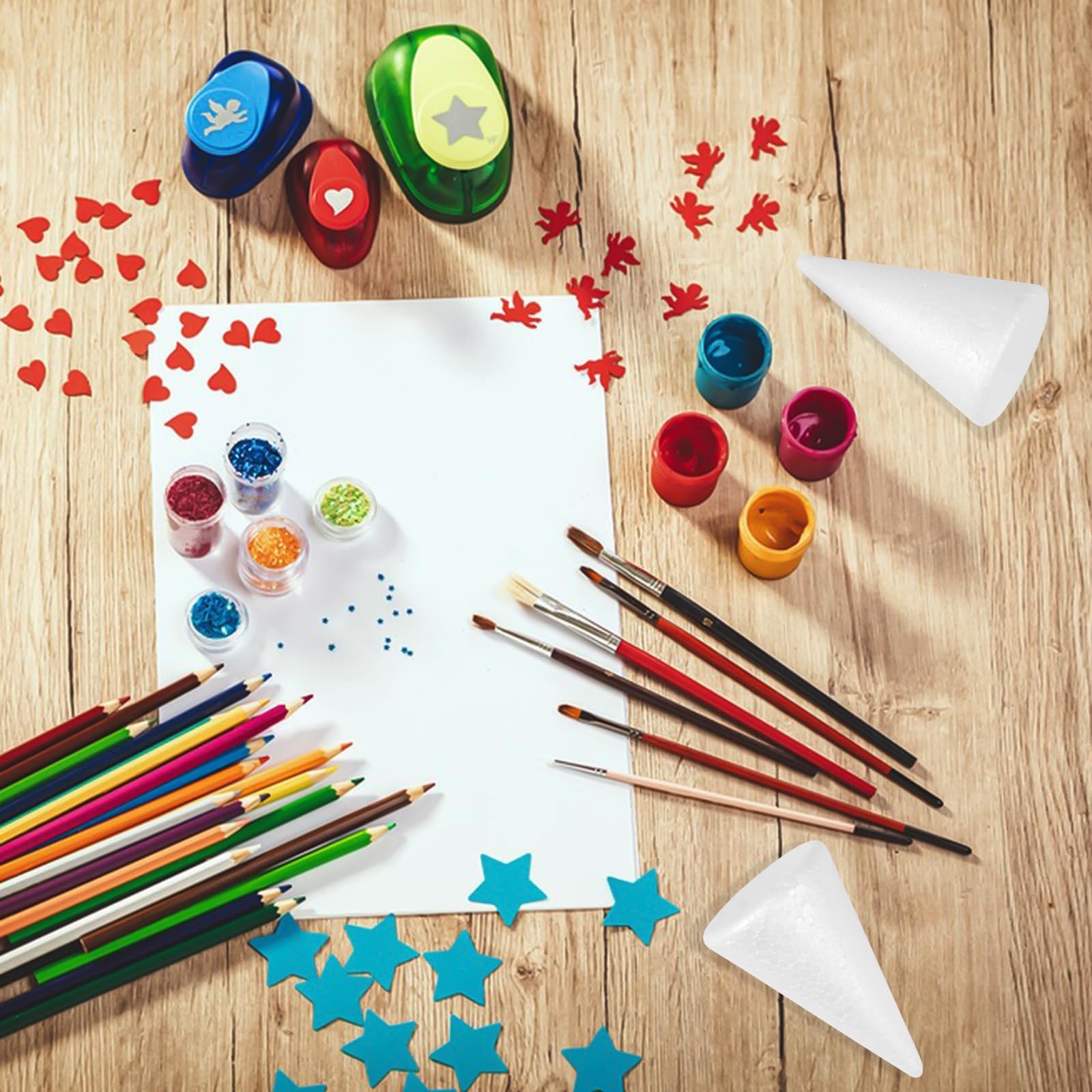 Teqooza Small Craft Foam Cones White Polystyrene Cone Shaped