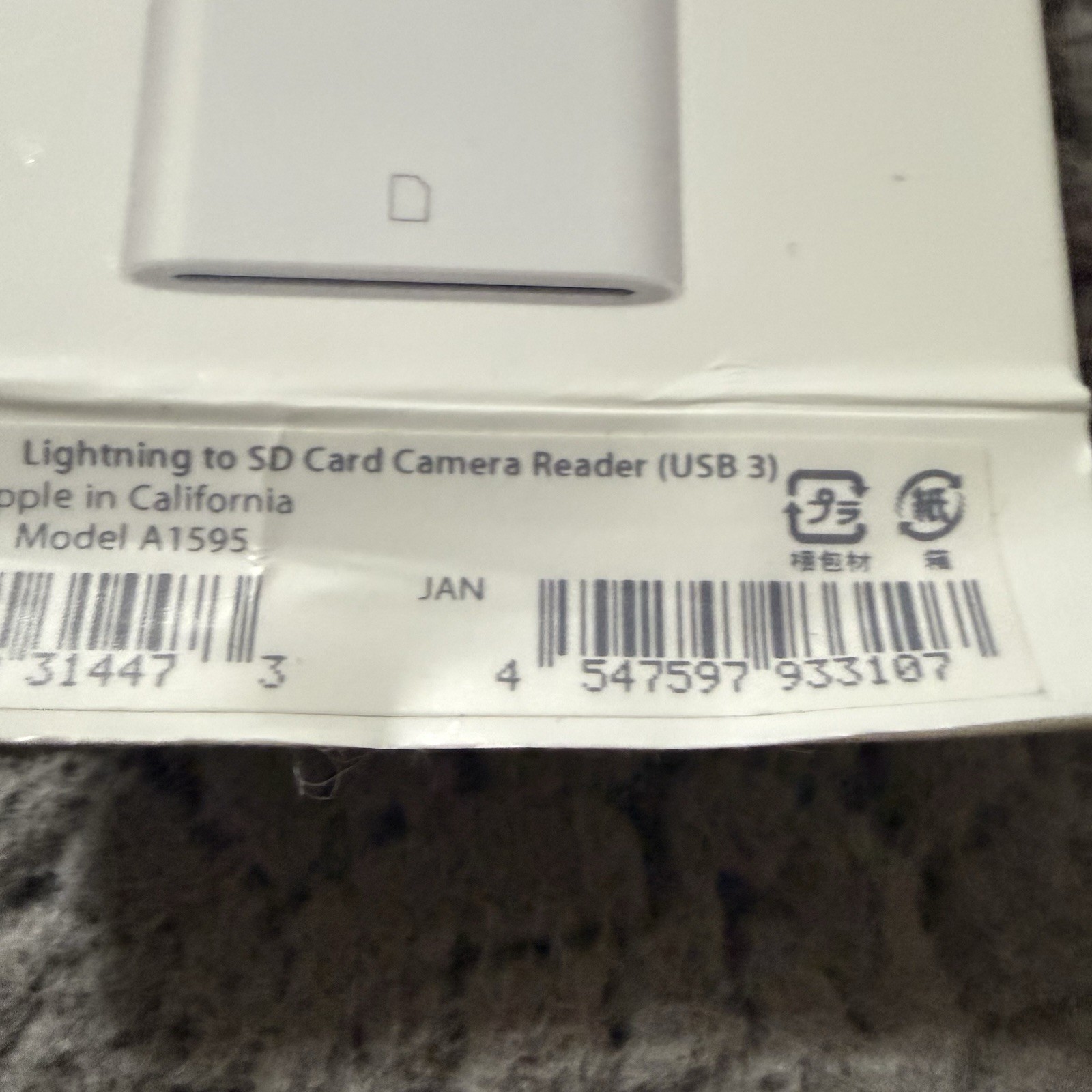 Genuine Apple Lightning to SD Card Camera Reader White Model A1595 Authentic