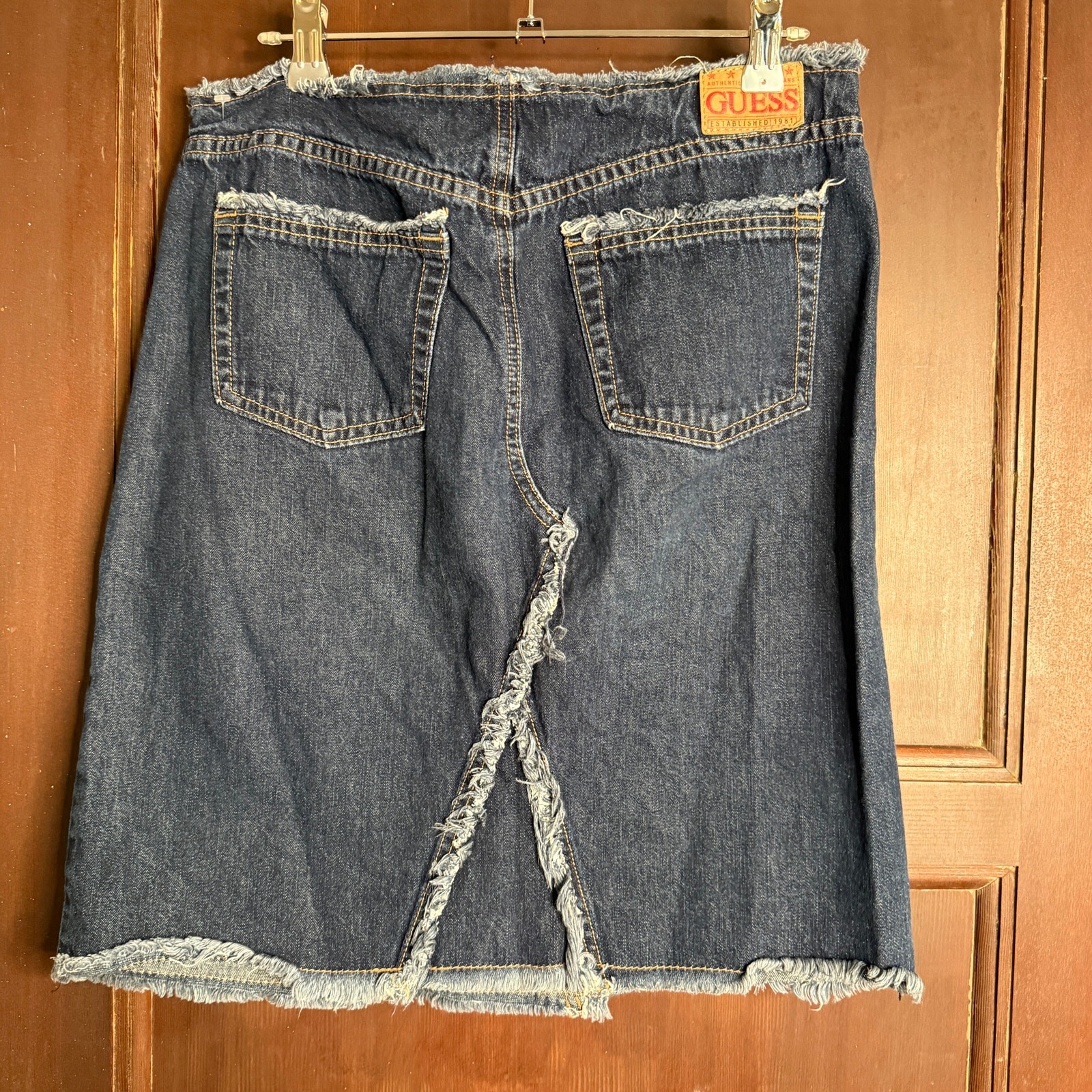 Y2K Vintage Guess Jeans Raw Edge Low Rise Knee Length Denim Jean Skirt 30
