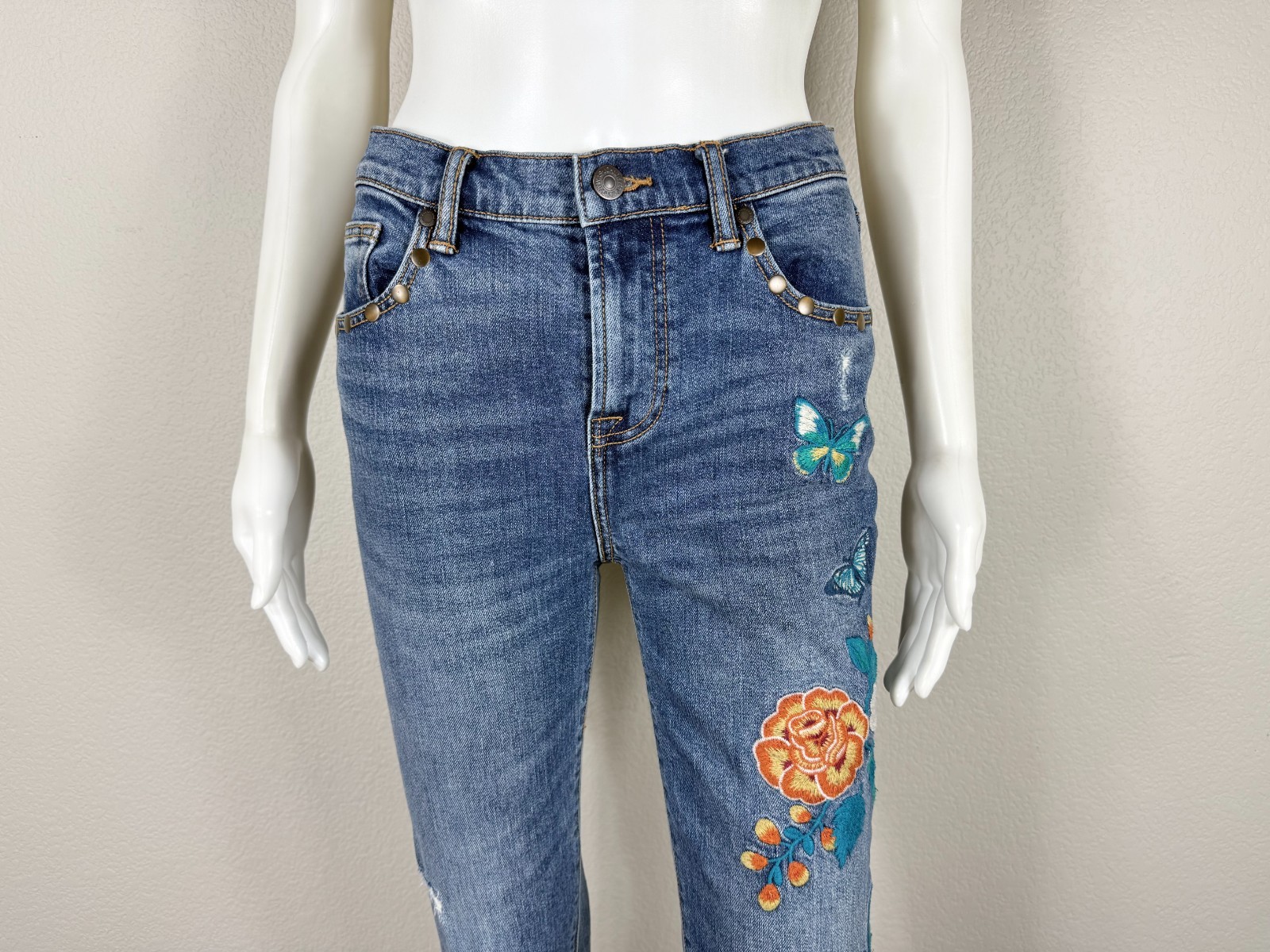 JOHNNY WAS The Cropped Baby Boot Taymia Jeans Floral Embroidery - Size 25 - NTSF