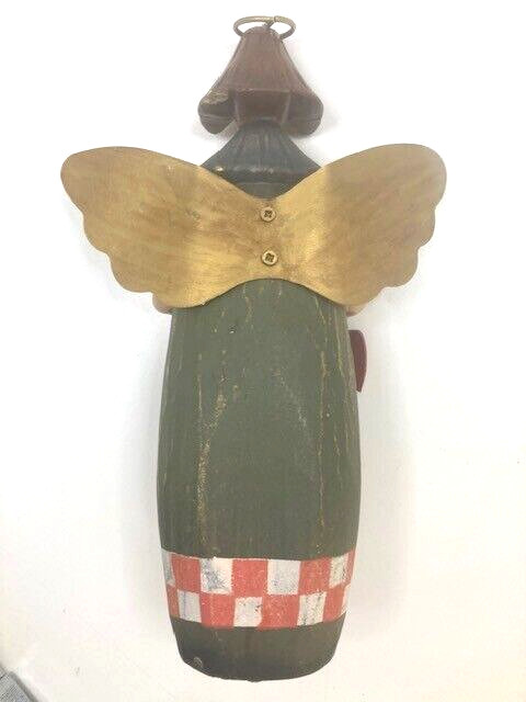 как выглядит Vtg Christmas Angel w/Hearts on String Figure Wings Resin 10 inch фото