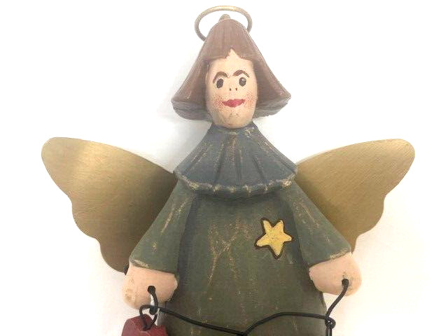 • Vtg Christmas Angel w/Hearts on String Figure Wings Resin 10 inch