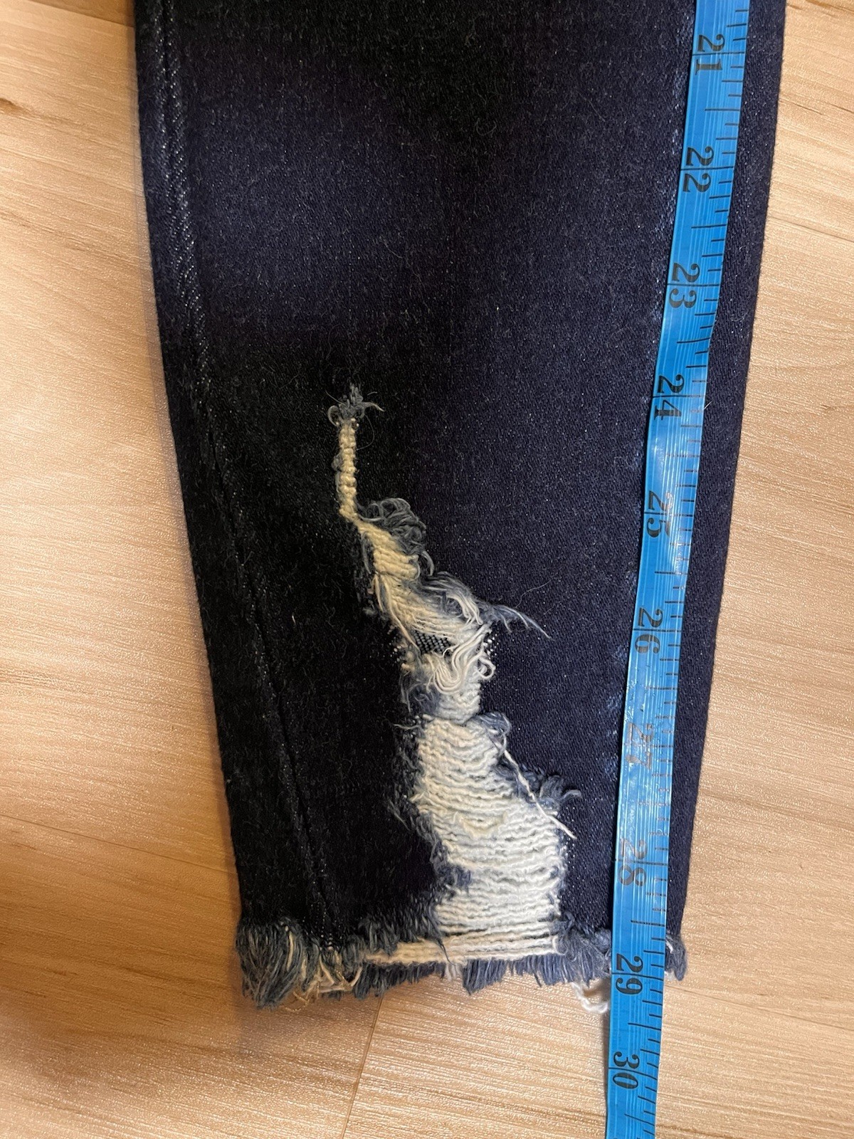 KanCan Dark Wash Mid Rise Ankle Skinny Jeans Button Fly Distressed Hem Womens 26