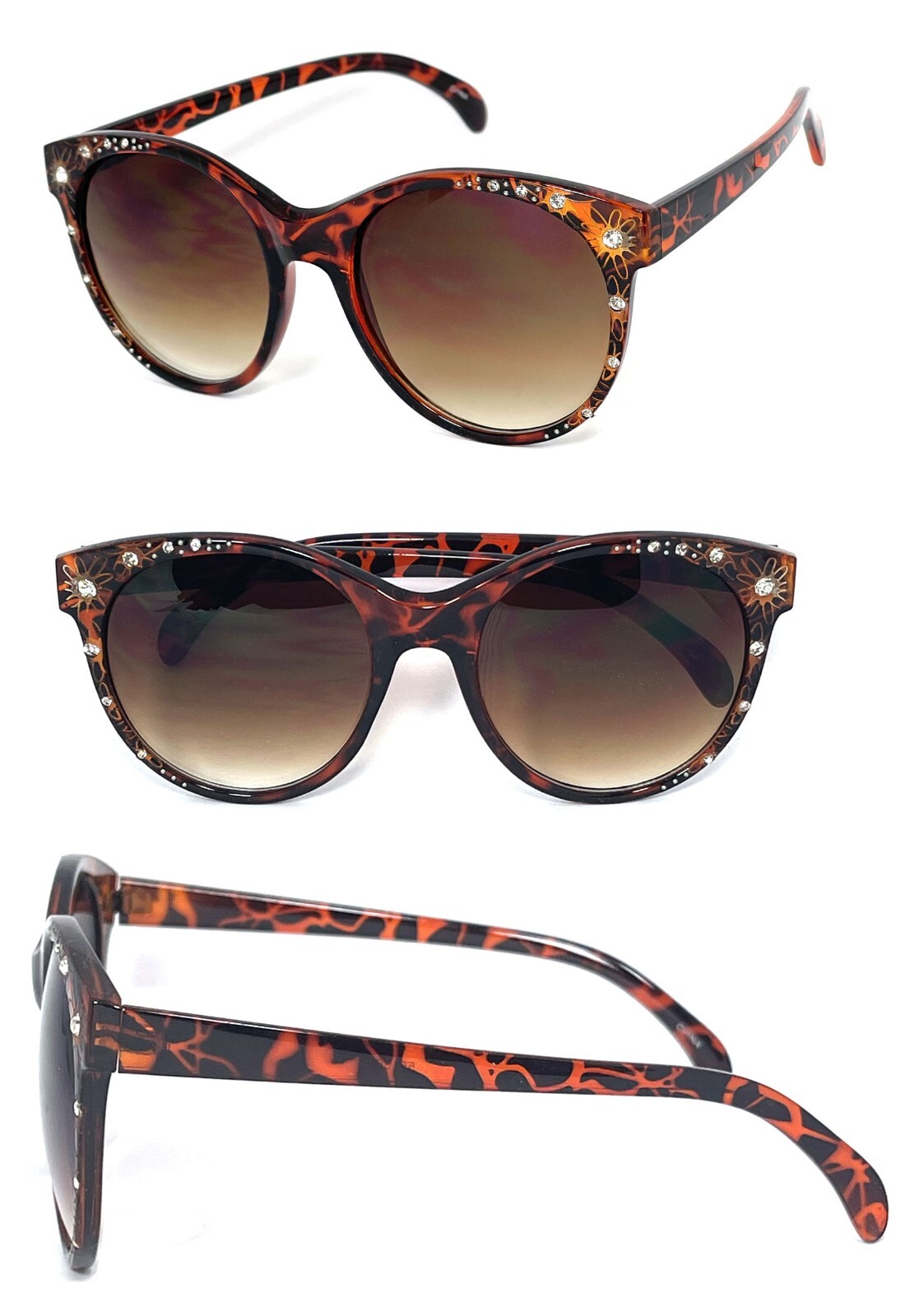 Women Retro Round Cat Eye Rhinestones Studded Sunglasses UV Protection