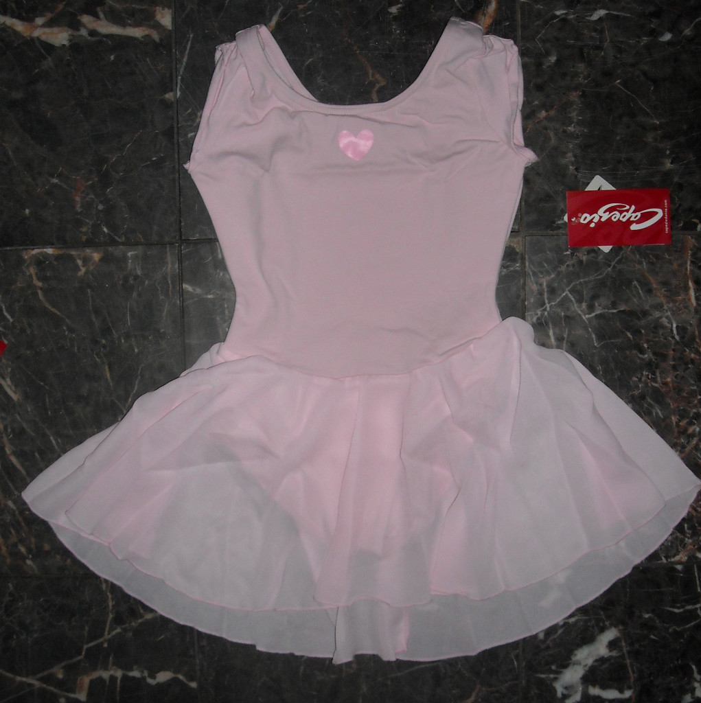 CAPEZIO Petal sleeve dress pink heart motif girls attached skirt leotard Ballet