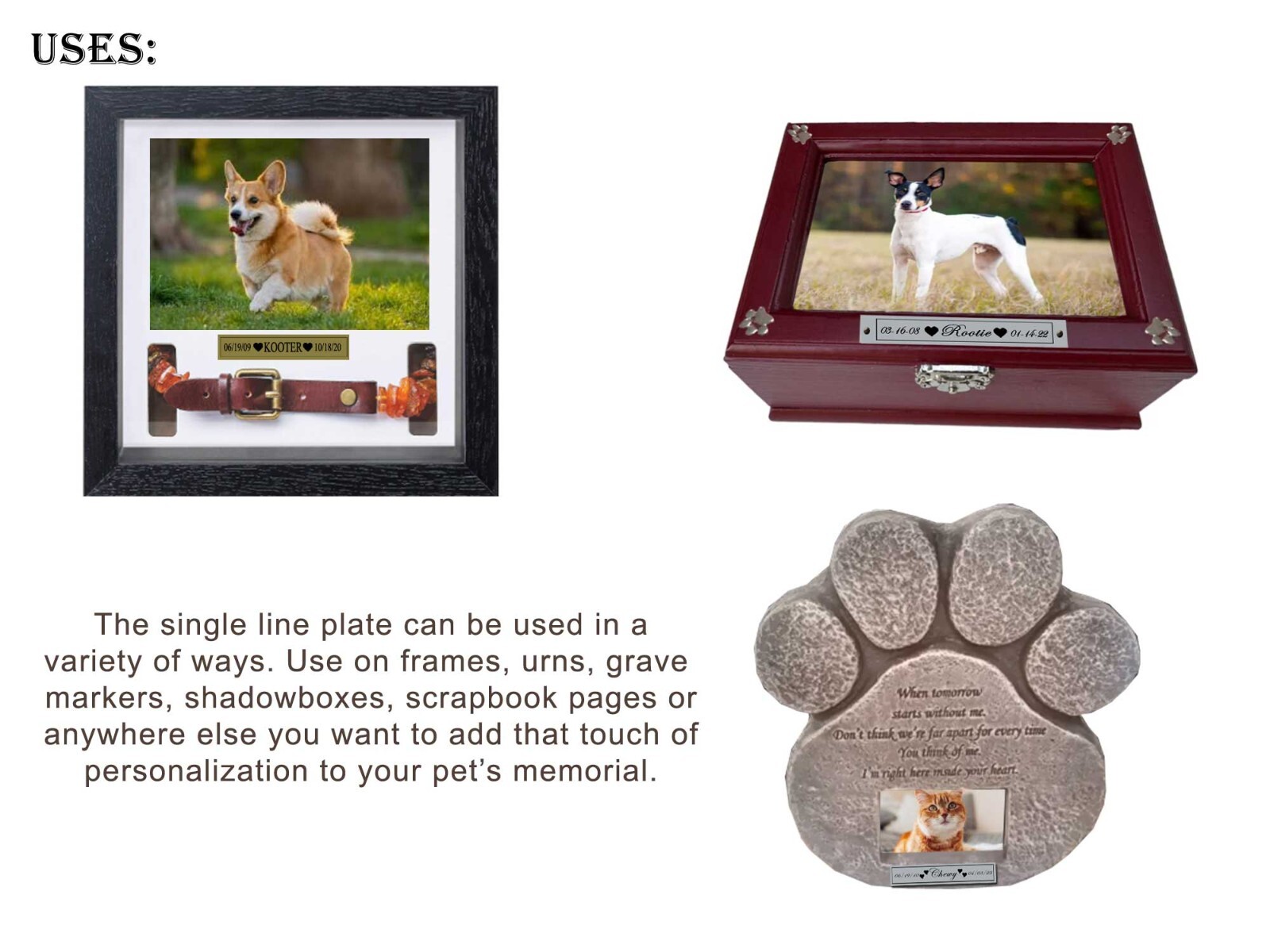 Personalization Instructions: Please include the following engraving information: 1. Name of Pet (up to 10 letters max) 2. Date of Birth (two digit format 00/00/00) 3. Date of Death (two digit format 00/00/00)