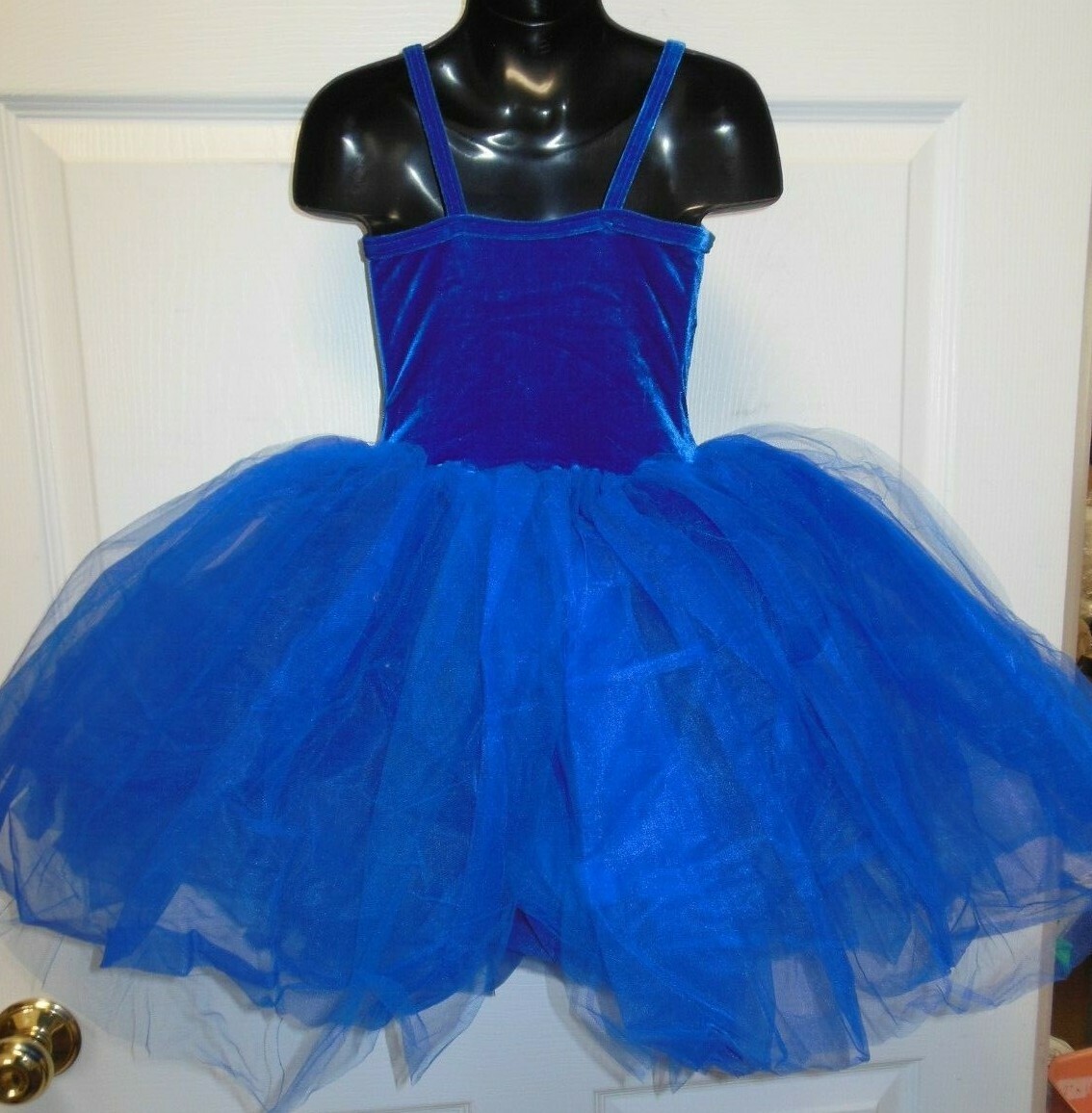 BALLET COSTUME Velvet Pinched Front Royal Blue Romantic Skirt Ch/lLadies