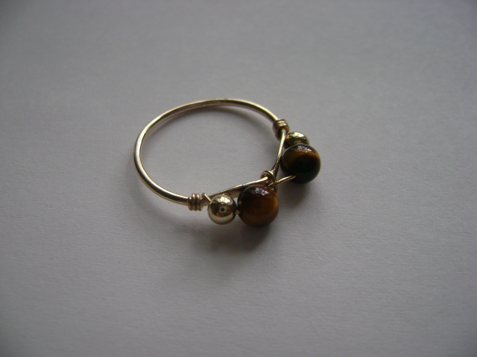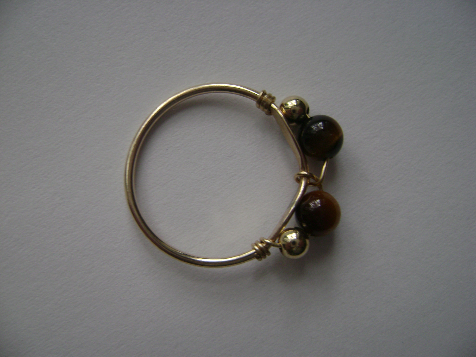 как выглядит Gold Filled Genuine Tigers Eye Two Stone Bead Wire Ring New фото