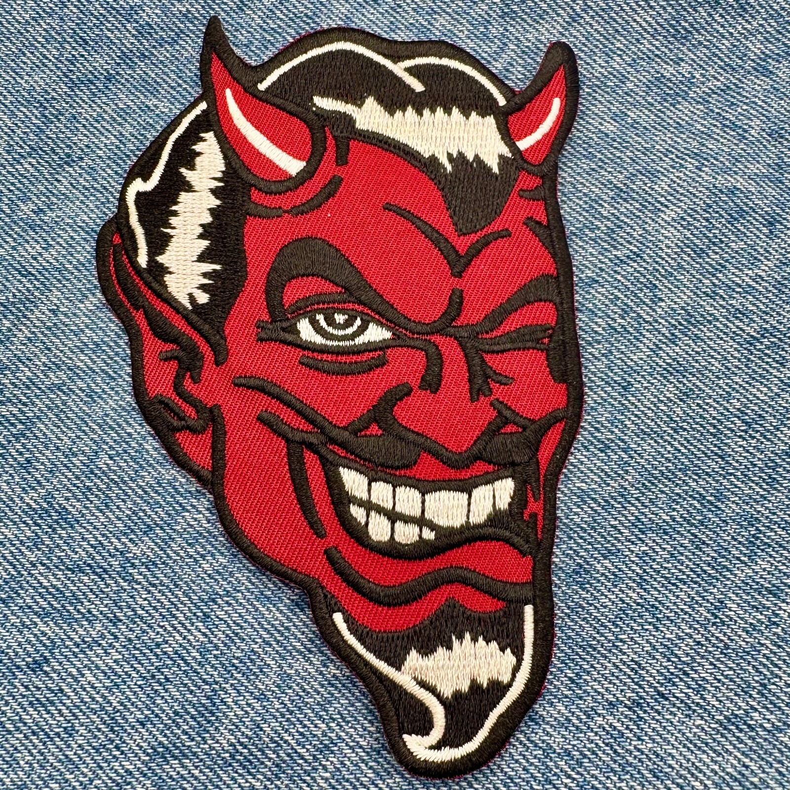 RED DEVIL EMBROIDERED PATCH SATANIC EVIL LUCIFER SATAN IRON-ON SKULL EVIL 666