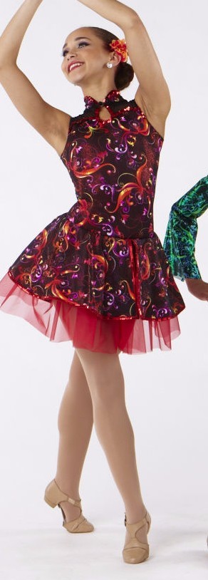 как выглядит NWOT Red Print Leotard Mesh bodice Asian Flair Petite Adult fits a sz 10-12C фото