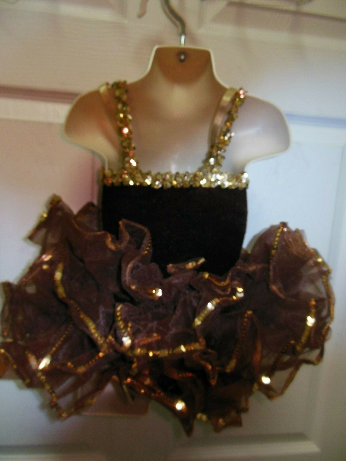 как выглядит Wolff Fording Dance Costume Brown Velvet Gold Sequin Girls sizes attchd tutu фото