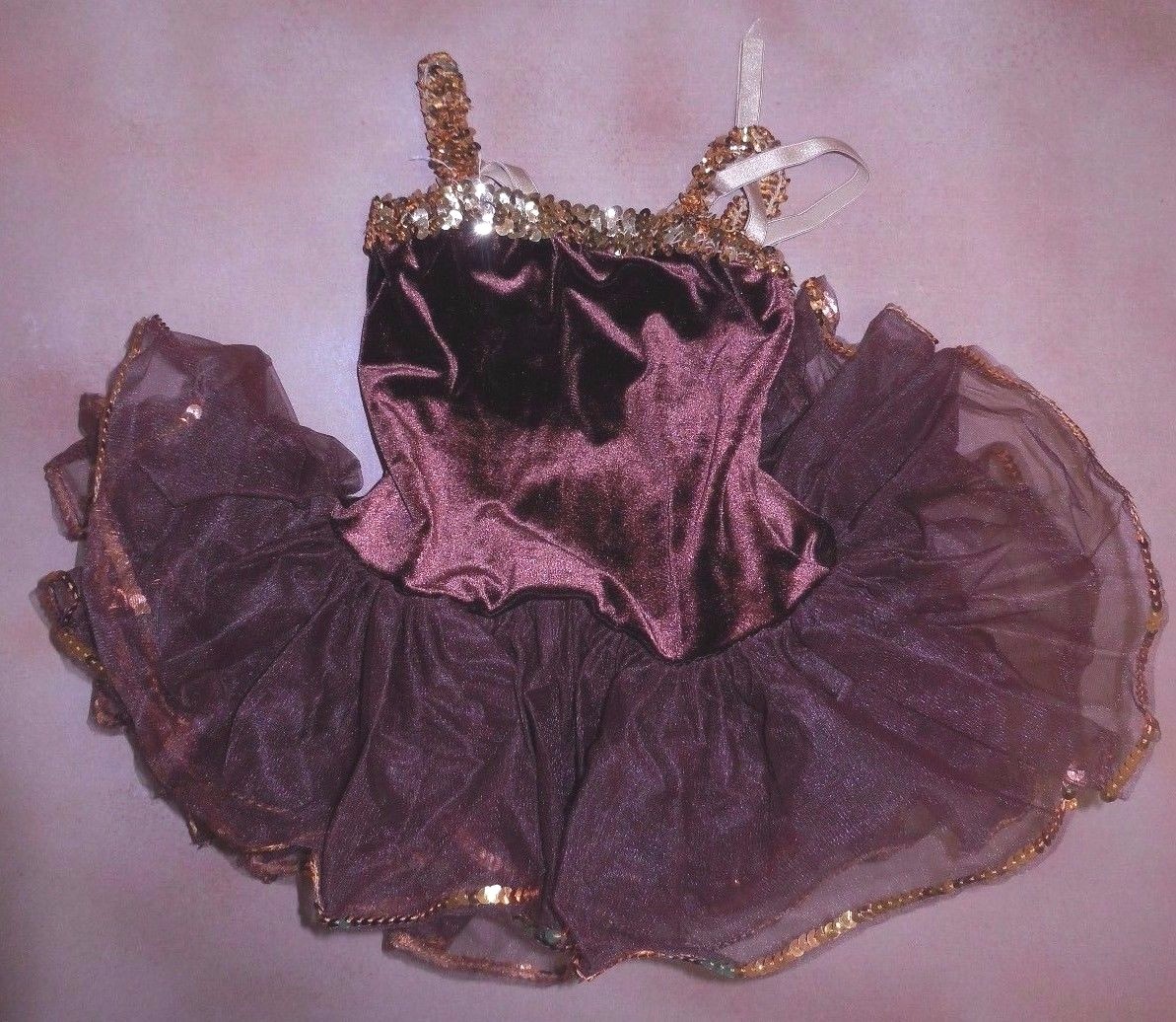 Wolff Fording Dance Costume Brown Velvet Gold Sequin Girls sizes attchd tutu