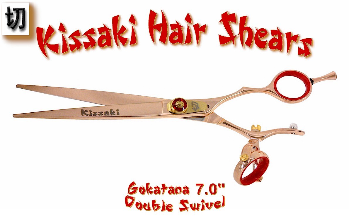 Kissaki Hair Scissors 7.0 Gokatana Rose Gold Red DOUBLE SWIVEL Hair Shears