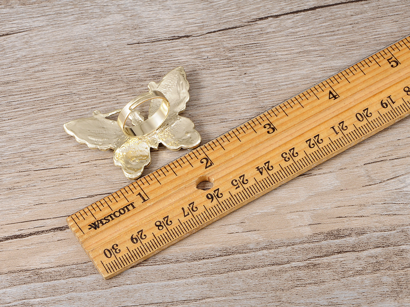 как выглядит Faux Pearl Beaded Golden Tone Butterfly Spread Beautiful Cute Sized Ring Clr фото