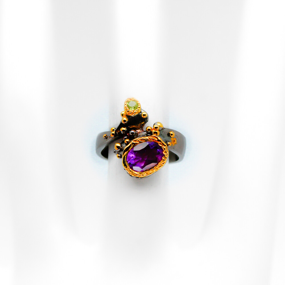 Gift handmade Jewelry Natural Amethyst Silver Ring 925 Sterling / RVS14