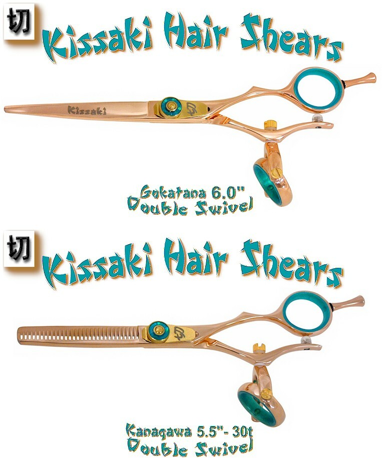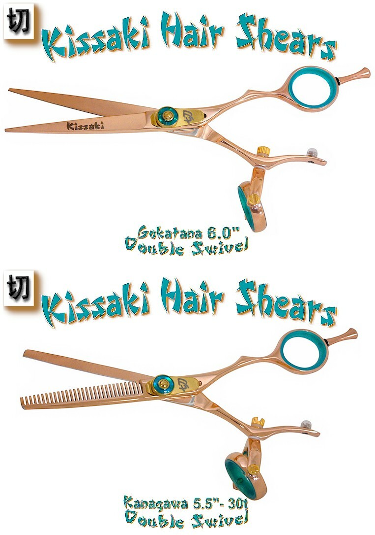 Kissaki Hair Scissors 6.0 30t Rose Gold Blue Double Swivel Hair Shears Combo