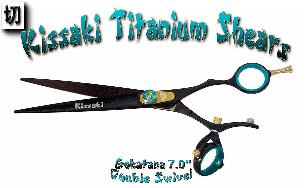 Kissaki Hair Scissors 7.0 Gokatana Black Blue DOUBLE SWIVEL Hair Cutting Shears