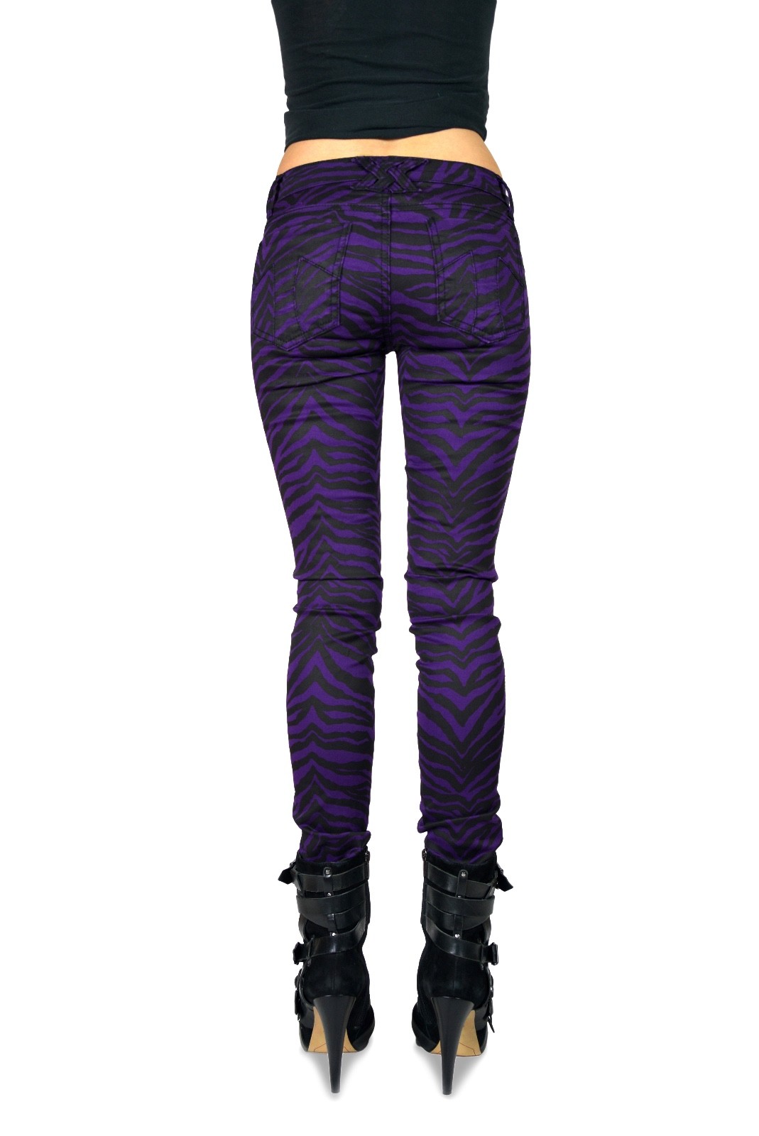 TRIPP EMO GOTH PUNK ROCK STAR PURPLE BLACK ZEBRA PRINTED JEAN PANTS MOTO IS6235P