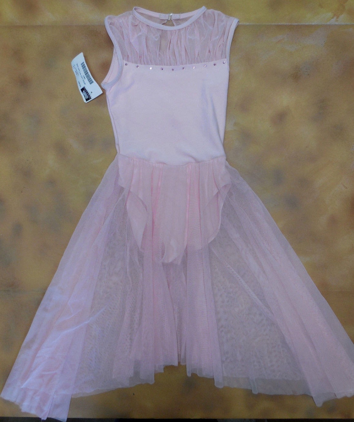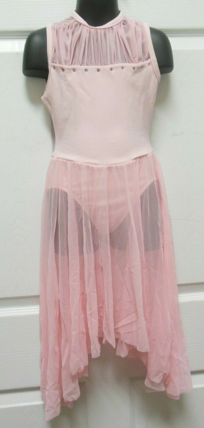 Lt Pink Mesh Lyrical Dance Skate Dress Rhinestone Trim Girls 6x-7 Int.Child